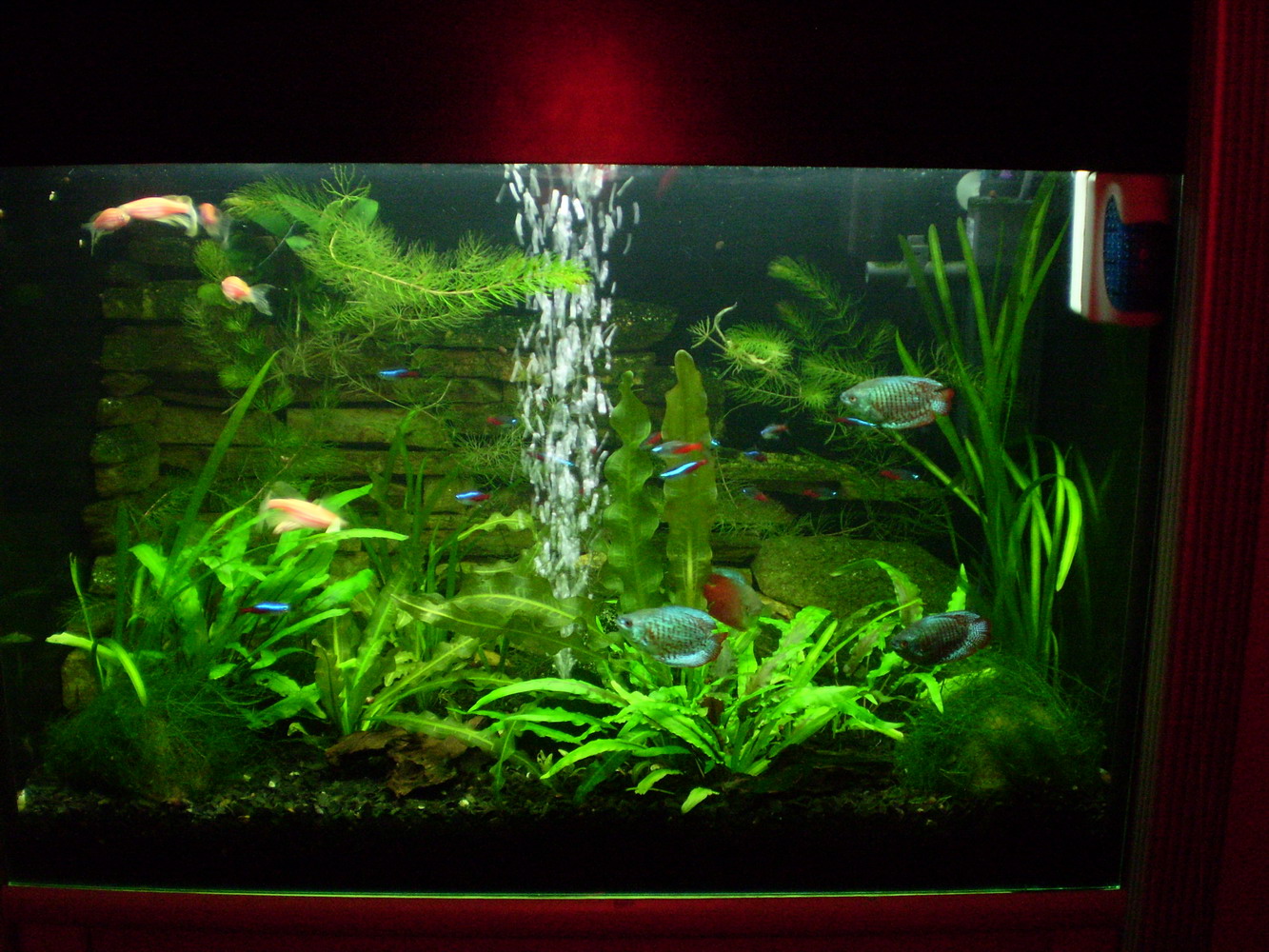 Животина: данио трансгенные (были первопроходимцами), неон голубой и алмазный, анцыструсы, коридорасы, лялиусы, ну и неокаредина..