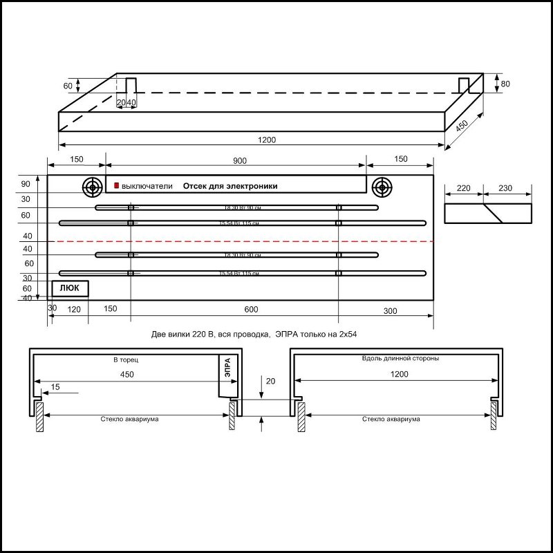 - предназначена для прямоугольного аквариума размерами 1200x400;