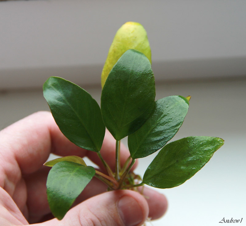 Anubias barteri var. barteri не похож. Читал где-то про такой анубиас, раньше в СССР его считали Бартера, но потом он зацвет как гетерофила.