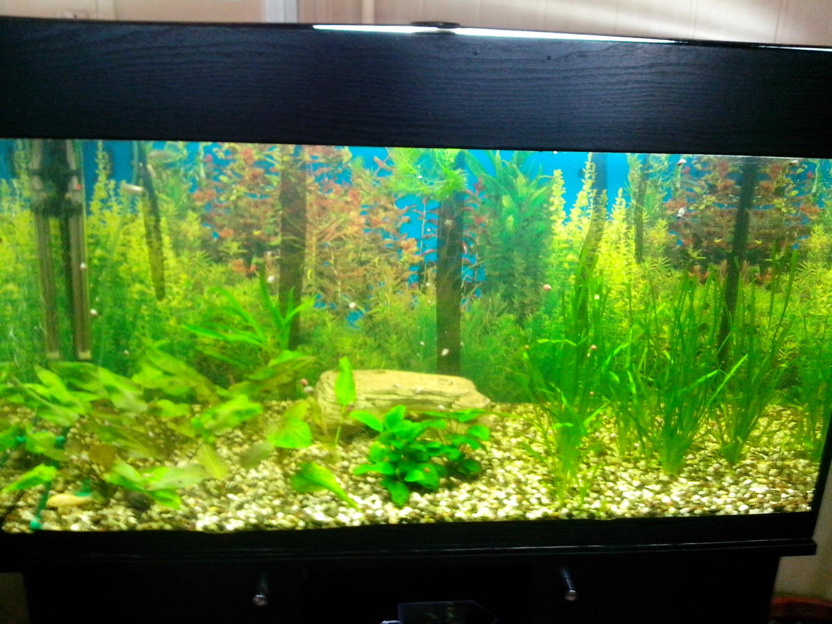 свет починили(правда пришлось самостоятельно, электрика не дождались  ), и Вячеслав еще гуппиков и валлиснерии докинул)) уже есть на что посмотреть)) осталось фон сделать, и будет вполне ничего)) если у кого есть кусочек сине-голубой самоклейки, или картинки все-таки, то будет отлично)) надо 33х40 см. если нет, то как выберусь на рынок, куплю