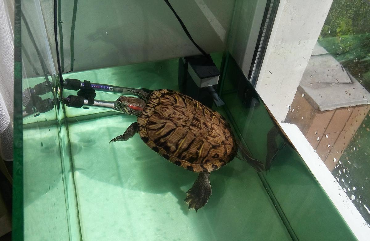 Продам красноухую черепаху (6 лет) вместе с аквариумом на 113 литров (размер ширина 36 см, длина 72 см, высота 45 см, стекло 6 мм), подложка присутствует. В комплекте Обогреватель, фильтр внутренний, лампа для рептилий. Цена 600 грн.