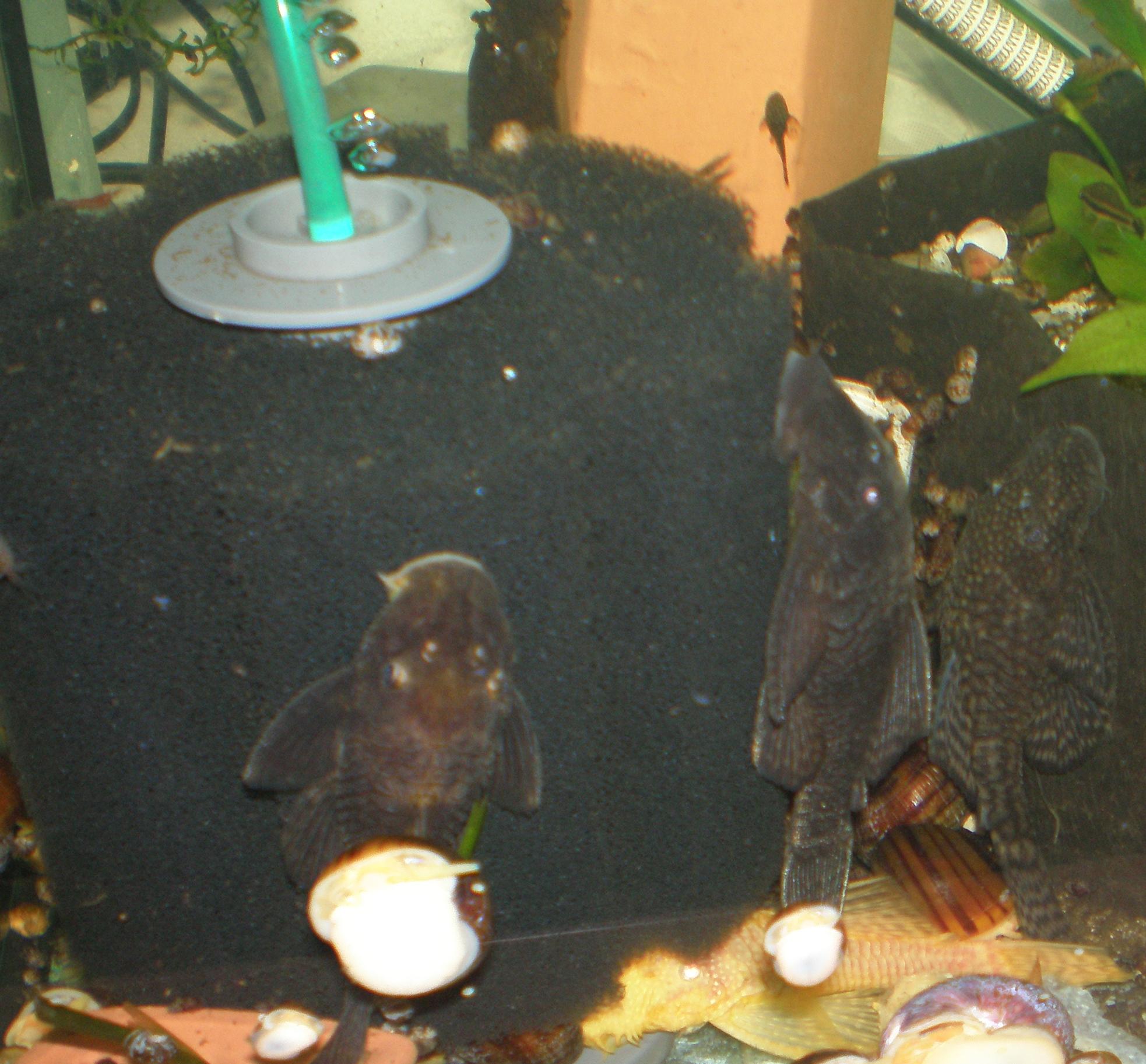 Тут в одной из тем высказывалось мнение про то, что условия содержания влияют на внешний вид рыбы, и абсолютно идентичные види будут по разному выглядеть. Так вот имею трех представителей анциструсов с "обычным" окрасом, купленых в одном магазине и выросших в одной емкости (2 самки и 1 самец). Фото конечно не важные, но раглядеть можно, что самец и одно самка похожи, а вот вторая самка явно отличается по окрасу. Не знаю, что это, природная морфа, расса, или чего то еще, но то, что под названием "анциструс обыкновенный" продают шо попало - это факт.