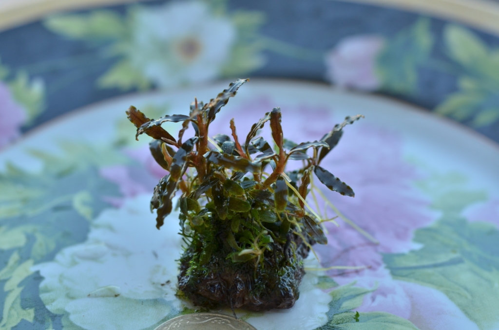 есть кустик миниатюрной .Bucephalandra sp. Kayu Lapis-1. на лаве.. (фото 1,2)