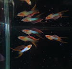 Интересный момент: при рассматривании фото обнаружила у некоторый самок окраску верхнего плавника и большое кол-во расщепления лучей в плавниках. Рыбы очень подвижны и такое при обычном просмотре не разглядишь.