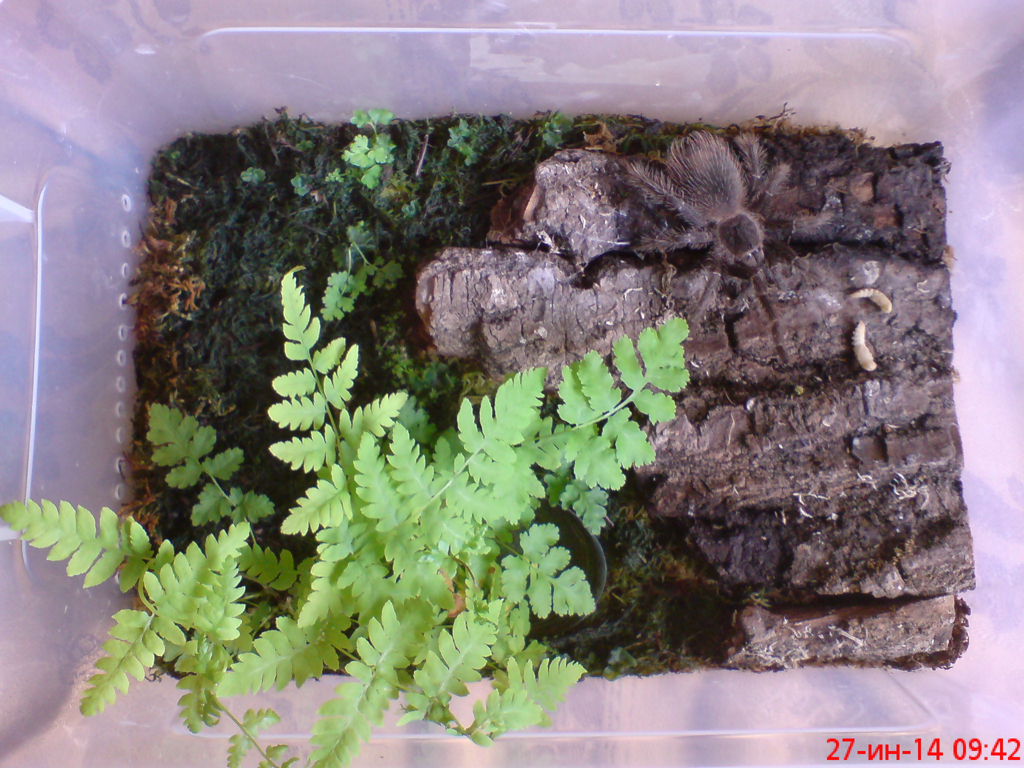 вот так продолжает расти мох в террариуме для куфии и у паука