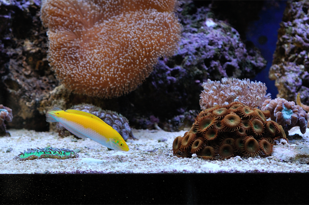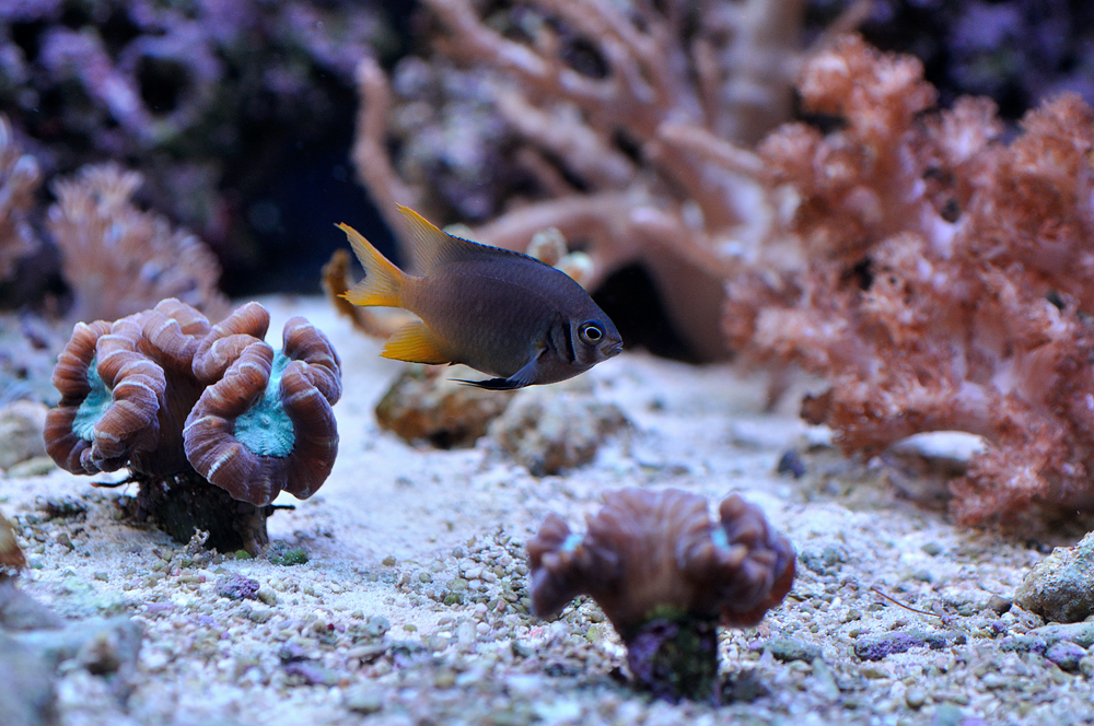 Рыба: зебрасома велиферум, губан желтый хризус, амфиприоны осцелярисы, амфиприон френатус, псевдохромис Фридмана, рыбы-ласточки.