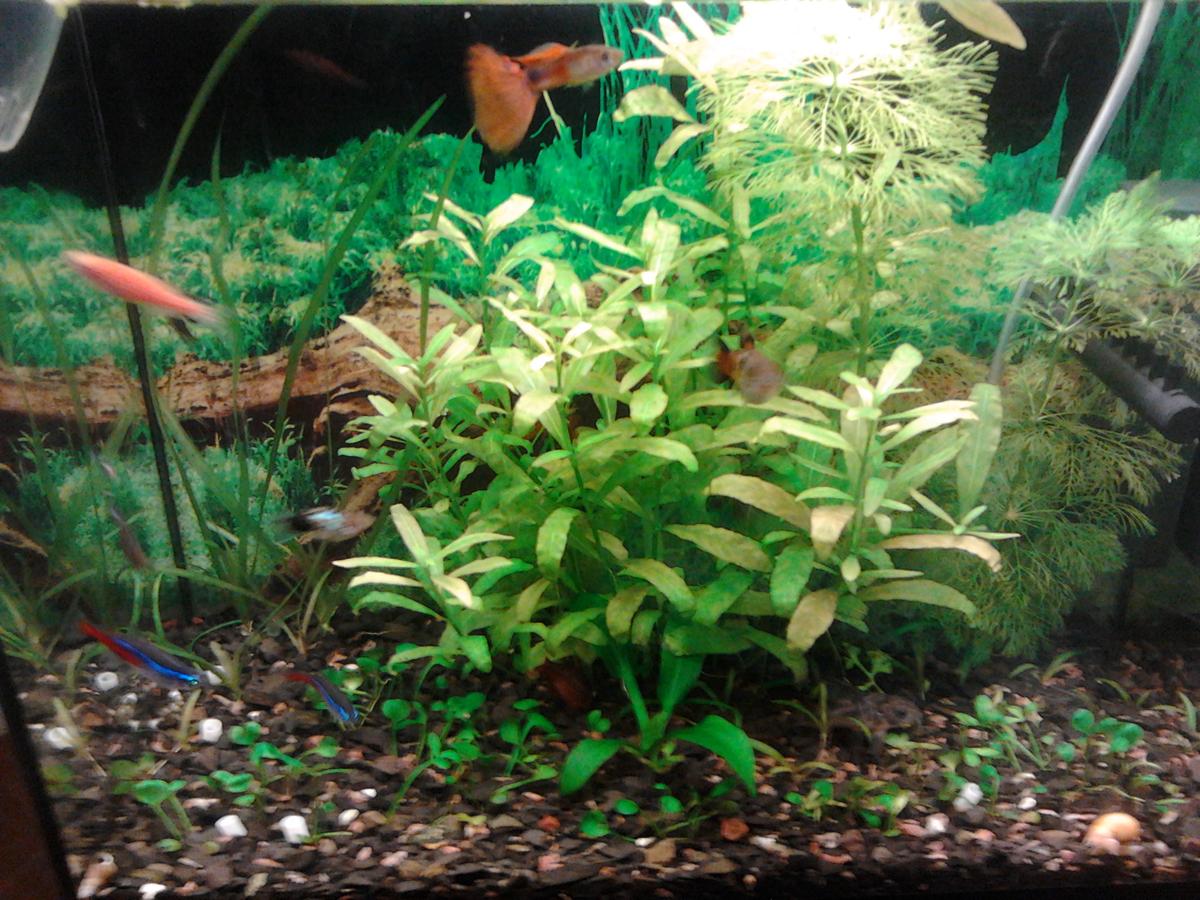 А по поводу рыб - неоны и барбусы стайкой смотрятся красивее. Но опять таки...размер аквы позволит содержать стаю не более одной.