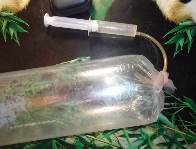 Когда я пакую рыбу с повышенной плотностью посадки , добавляю SERA toxivec , сразу . Все те знакомые , кто работает на отправках , делают точно так же . Конечно , если рыбу везти самому , четверо суток , то можно чуть распустив узел вставить предварительно затупленную иглу, или кусочек селиконового шланга Ф4мм , и добавить SERA toxivec одноразовым шприцем , не выпуская кислород из кулька . Селиконовая трубочка Ф4мм хорошо одевается на одноразовый шприц (см.фото) . Но эти манипуляции должен делать человек хоть мало-мальски знакомый с паковкой кульков .