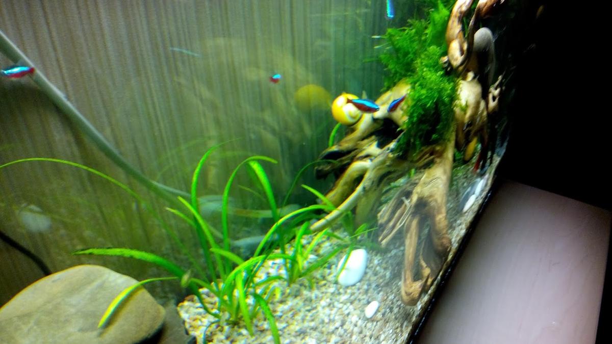 Аквариуму 20 дней, вода кристальная но грунт уже заметно грязноват. Подмену делал за все время один раз (~15%) ровно 2 недели назад, когда показалось, что улиткам плохо. Сегодня обзавелся сифоном, собираюсь немного почистить. Однако некоторые форумы советуют месяц-два вообще не трогать, пока не устаканится баланс.