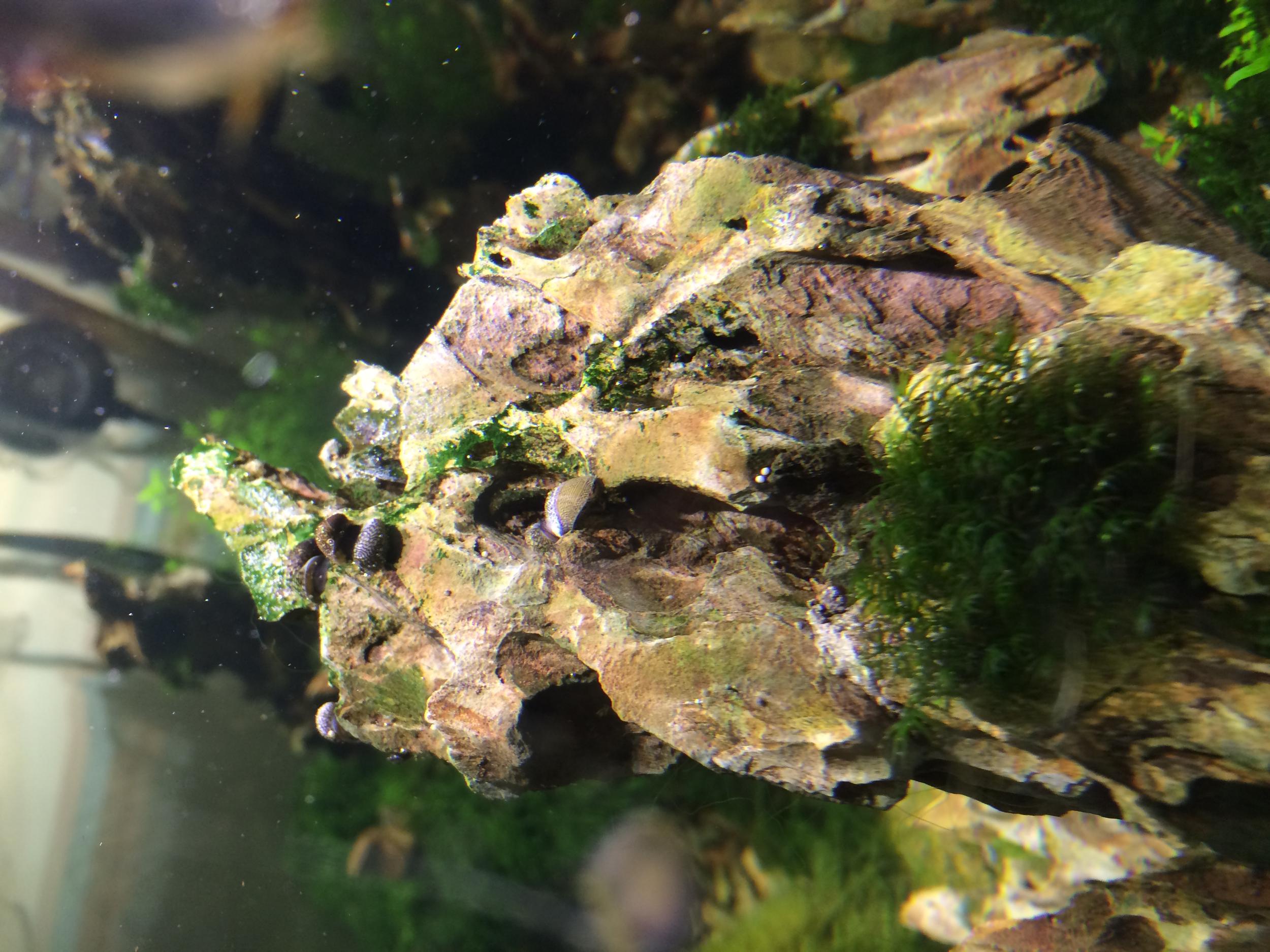Дякую Ігор, за тедіків! Трудяги конкретні, за пару днів камінь майже весь почистили! Це один і той самий камінь. Вибачте за косо-криві фото, загружала з телефону, але видно як равлики попрацювали.