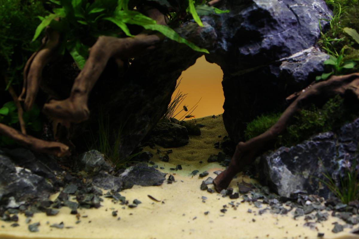 Варіант із темним фоном змусив серце йокнути! Границі акваріума зникли, композиція отримала неймовірну глубину! Легесеньку підсвіочку б на грот і було б просто бомбезно!