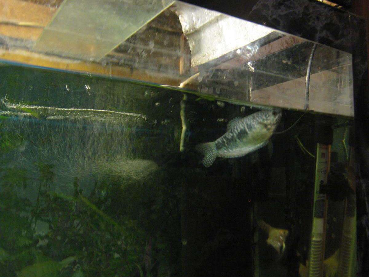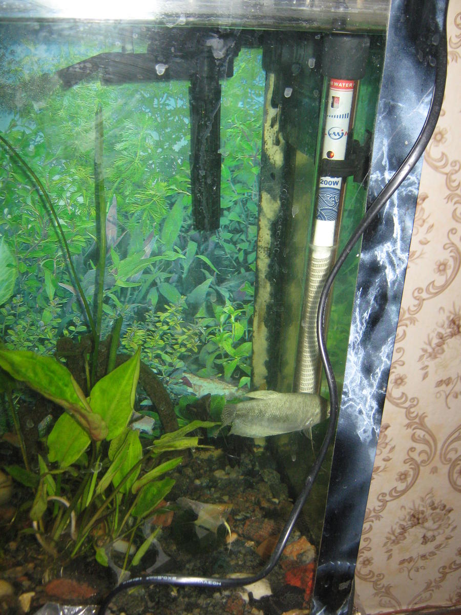 Умер беспокойный гурами((((( Второй вроде бы жив, но внушает опасения: постоянно сидит на дне, только иногда всплывает подышать. Да и на вид он какой-то бледный, как даже эмалью покрытый.