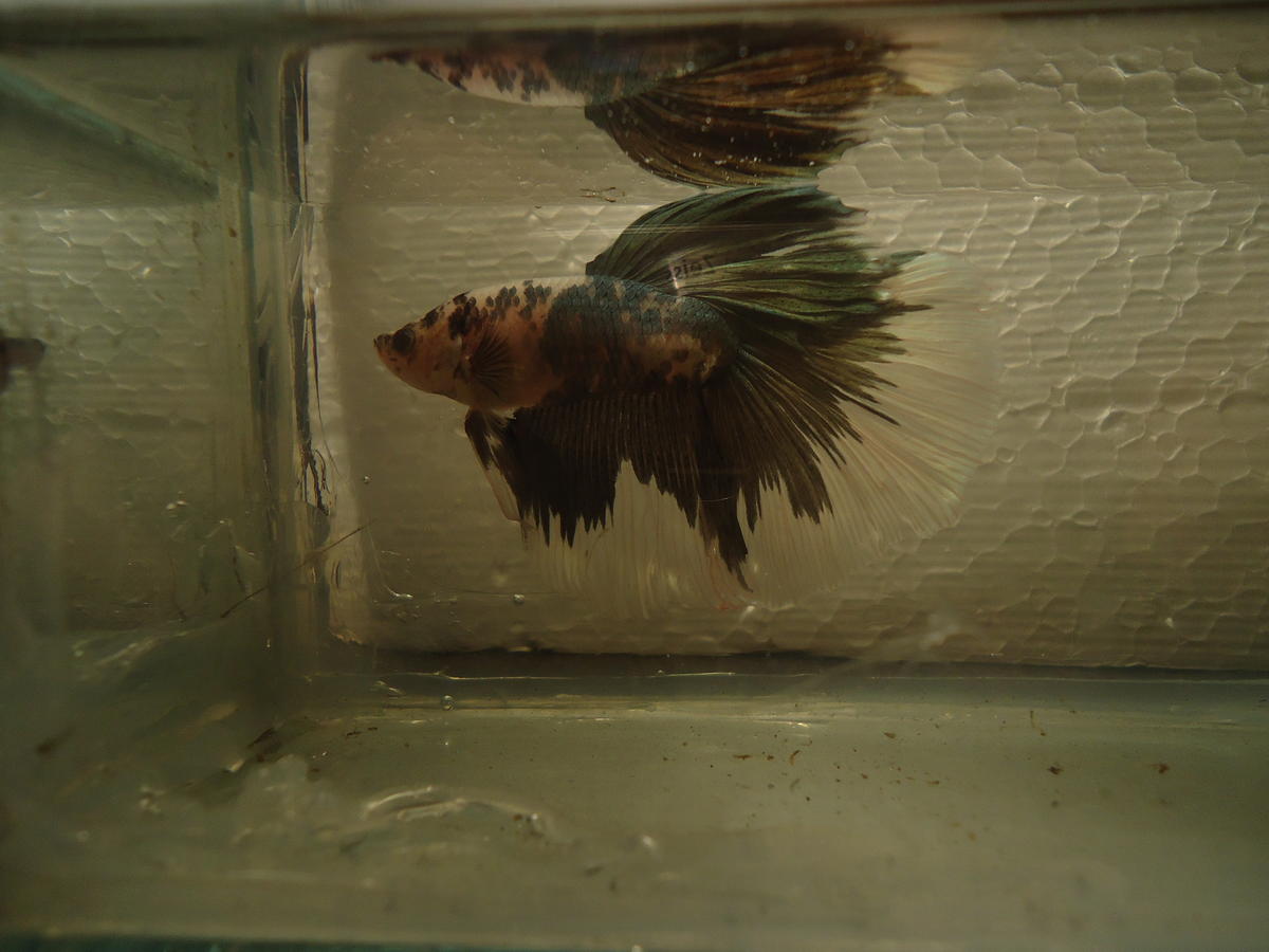 Она согрешила приблизительно на 15%)))) имел ввиду длинноплавничных. Не смотря на то что родители оба ХМ, 40% приплода не имеет полумесяца.