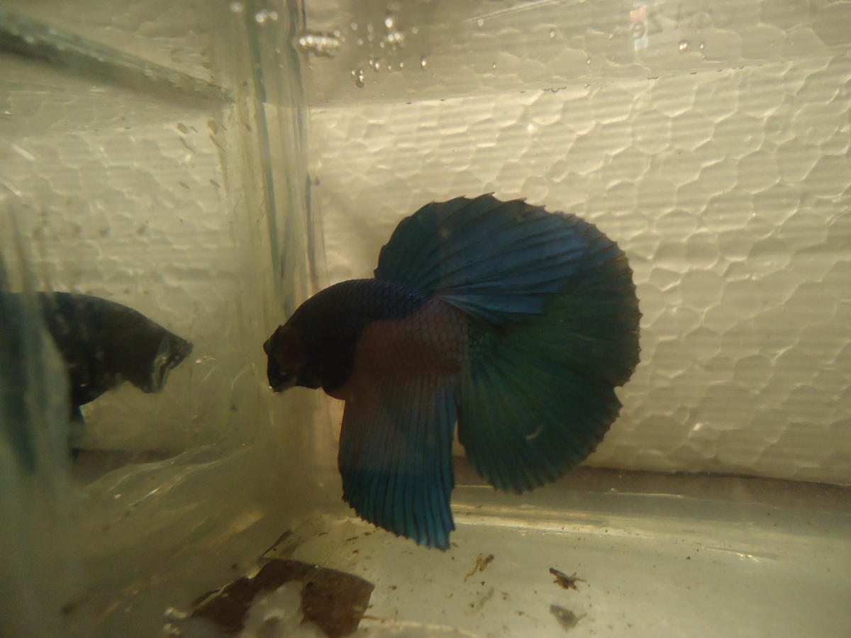 Самец, отличный плакат "благородных кровей" с хорошей родословной. А вот самка - обычная халфмуновая роза. От того такой рост плавников.