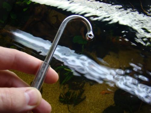 При підміні, щоб не стояти з шлангом вирішив зробити гачок + шланг + садову насадку (розпилювач), а потім знайшов 3в1)) - слиновідсмоктувач стоматологічний (радянська медична нержавійка - дозволений сплав в акваріумі))), правда бувають більш перфоровані слиновідсмоктувачі - з ними напевно краще розмішуються температурні/хімічні розбіжності води акваріумної і води з крану, але вже який є)) Чіпаю гачком за корягу близько потоку виходу фільтра і плааааавно підмінюю воду))