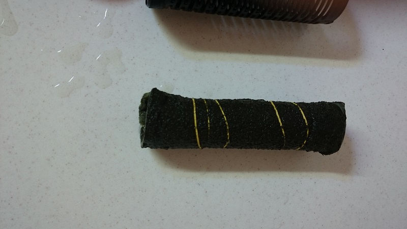 Не утерпел-таки, попробовал на скорую руку. В магазине был приобретен кусок агроволокна 17 г/м2 размером 1,6х1 м2. Из него нарезал ленты шириной, равной высоте стакана фильтра и условно-плотно скручивал в цилиндрик, пока не набрал примерно 3 см в диаметре. Ушло 4 полоски по 1,6 м. Вставил получившееся в стакан и придавил верхней частью. Честно скажу - из картинки внизу видно, что фильтр я выбрал не самый удачный и вода вполне могла огибать всю конструкцию, но что сделано, то сделано. Погонял фильтр в ведёрке полчаса, чтобы смыть магазинную пыль с материала, и поставил на ночь в аквариум. Последнее фото - вкладыш из агроволокна после 7 часов работы. Что-то он отфильтровал! Будем совершенствоваться дальше