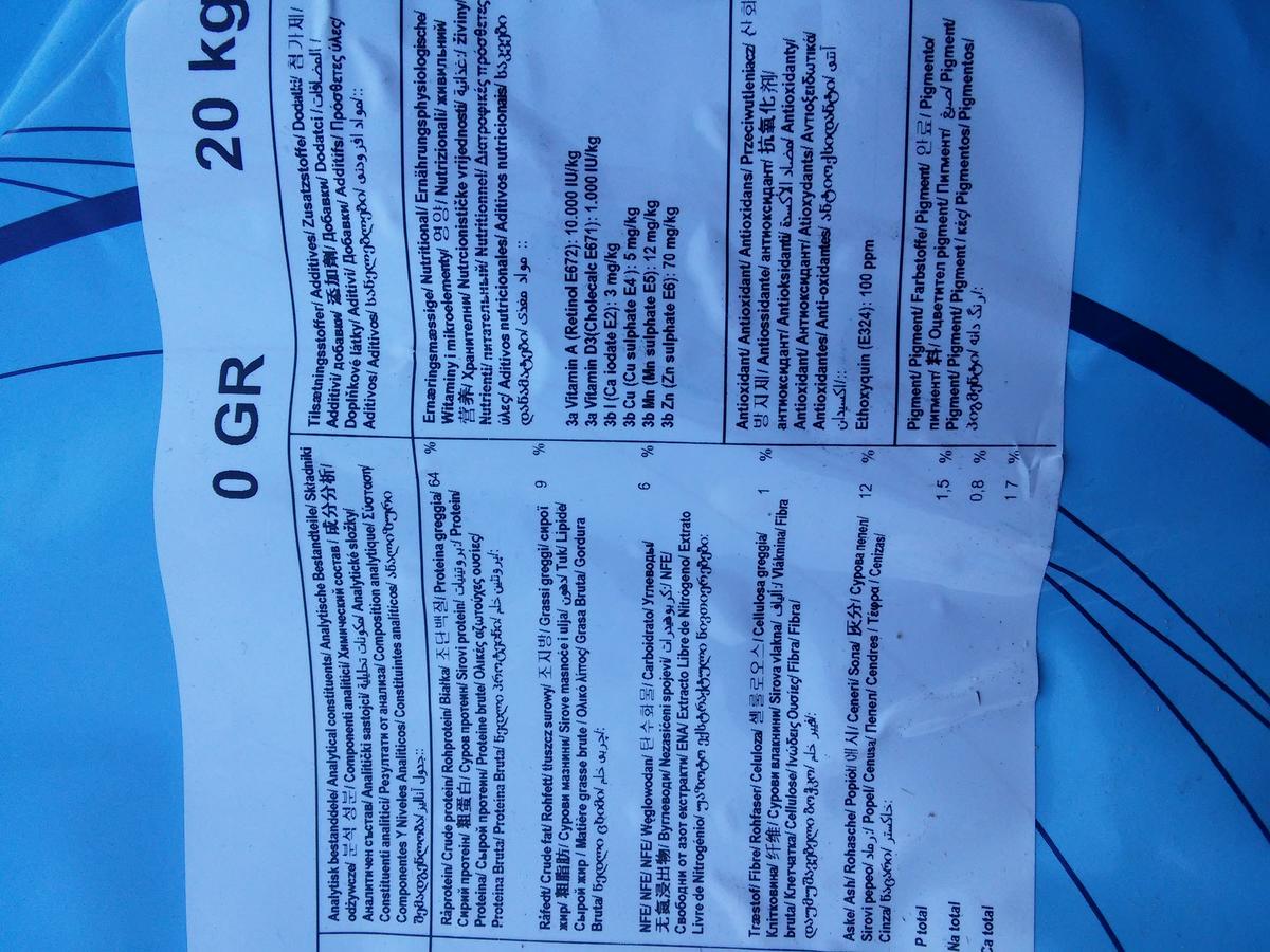 Состав-Рыбная мука,крилевая мука,рыбий жир,пшеница,дрожжи,витамины,минеральные добавки,иммуностимулирующая добавка MacroVital (бета-глюкан,Витамин С и Е )