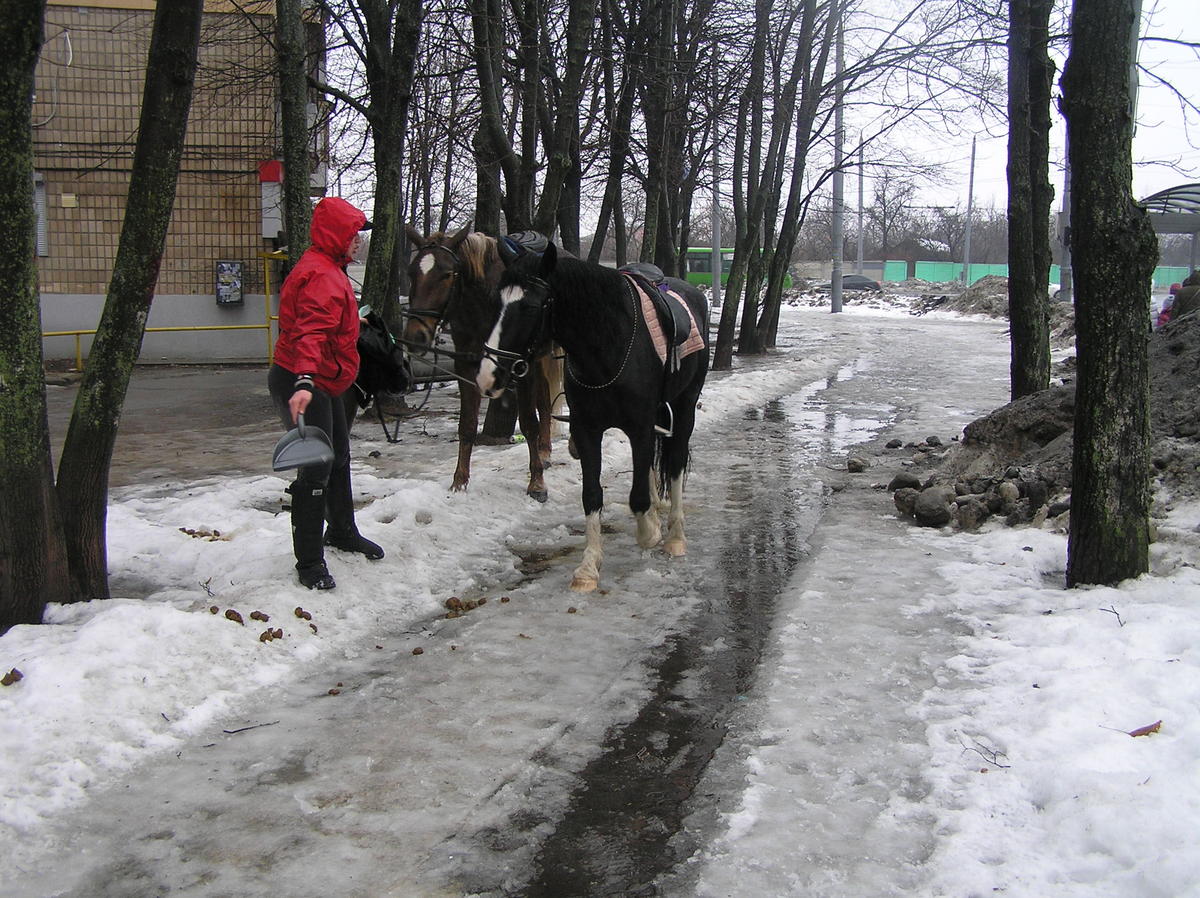 И ЕЩЕ в догонку(и что не поместилось на птичьем рынке,но встретил в городе на обратном пути)   ТАК ВОСПИТЫВАЮТ ЛОШАДЬ,рассказывая,что она не права.Сам слышал.Лошадь,это вам не собака!