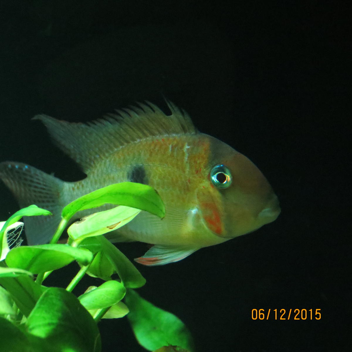 Одни из моих любимцев, рыбки пугливые, но это на пару секунд, потом любопытство берет верх. К сожалению мне досталась всего одна самка, но уже образовалась пара и они активно прогоняют всех самцов от гнезда. Самка в гнездо не заплывает, но находится всё время рядом.Так что надежда маленькая, но есть.