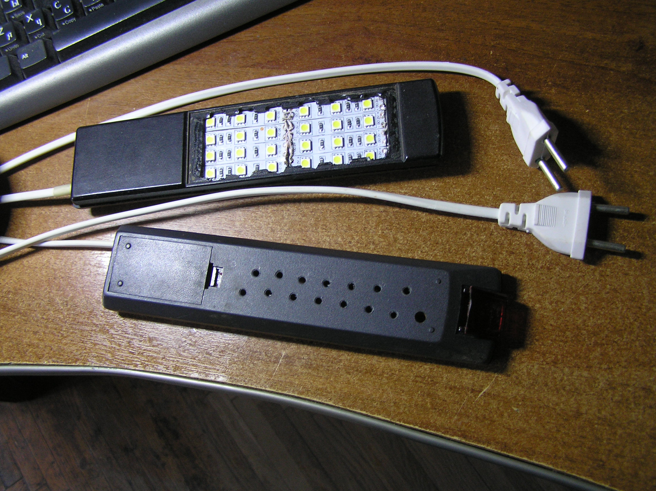 Вот еще сделал пару удобных светильников по 3,5вт для небольших аквариумов.На 25 литровом аквариуме лупят хорошо.На лентах.По 24 светодиода.Питание в батарейном отсеке..Очень эффективно.КОРПУС использовал от пульта телевизора