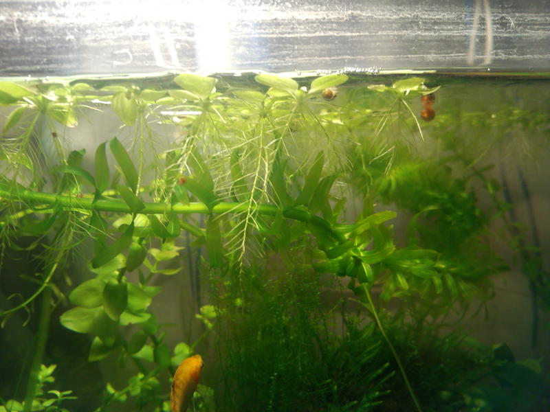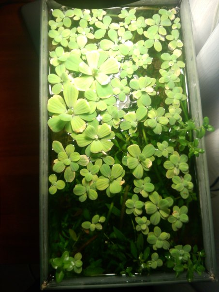 Подмены и сифонку не делаю, фильтра нет. Только подливаю воду по мере испарения) Растения и рыба чувствуют себя великолепно)