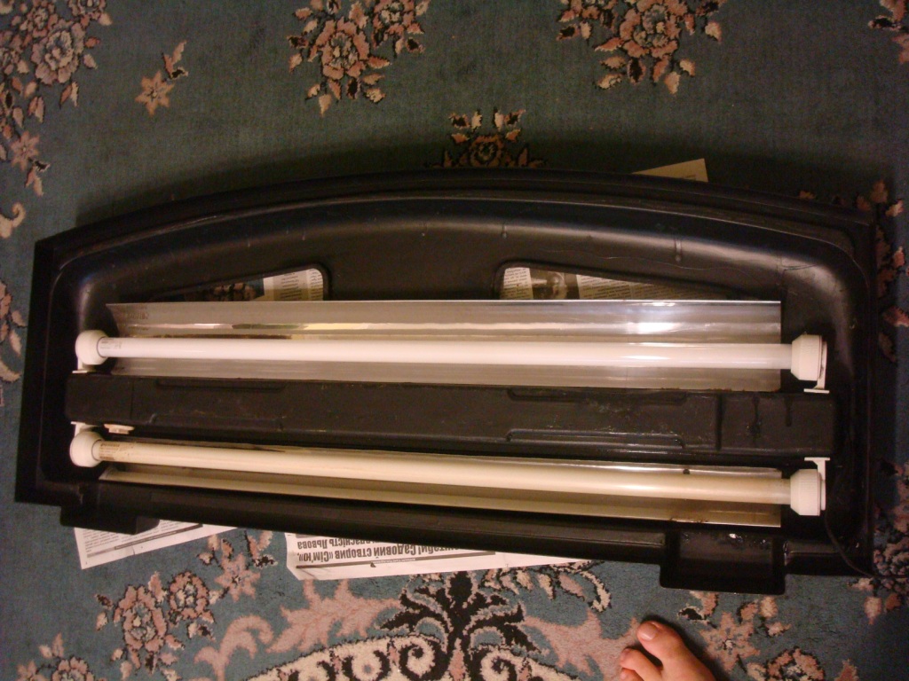 В комплект входять: акваріум, чорна кришка з стальними відбивачами та світильником з лампами 2х30Вт, Т8,