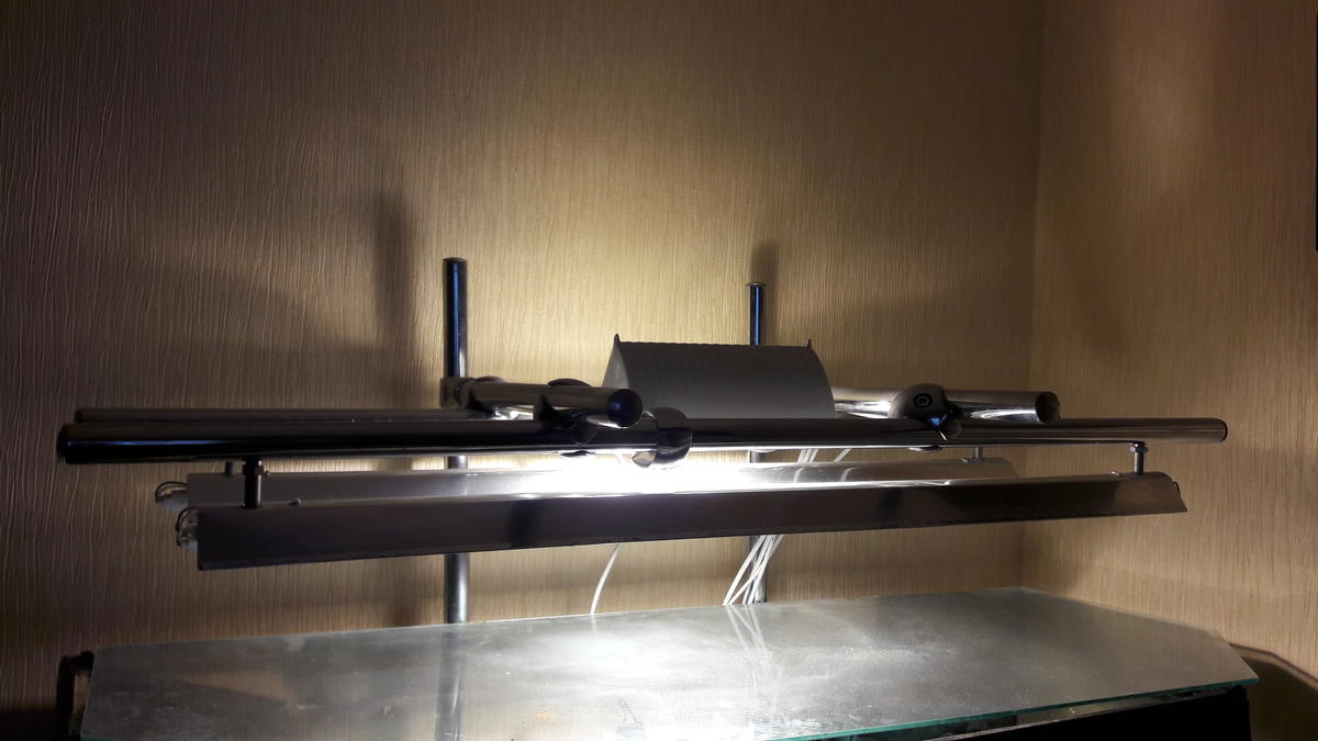 Светильник продам только, если будете покупать аквасы+тумба+рыба. Стоимость светильника - себестоимость (2 шт. отражателя + 2шт эпра ELT BE-236-2 + эпра МГ + лампы МГ 75w + 150w + 2 шт лампы 39W T5 (одна денерли) + сама конструкция крепление + трубы).