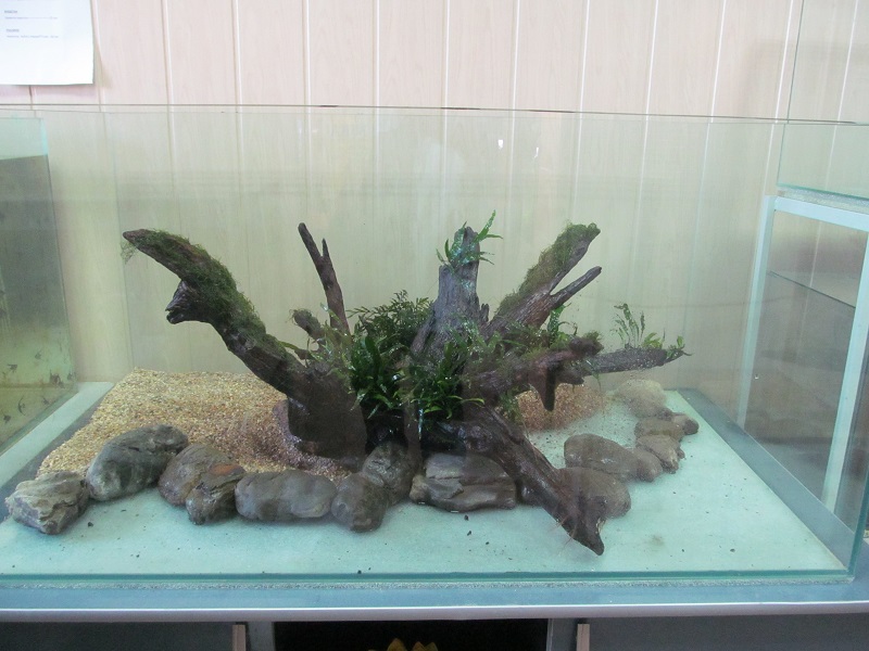 Параллельно со стартом нашего аквариума сегодня перезапустили еще один, в котором изначально росло с десяток видов разных растений и эта кашка-малашка была малопривлекательной. Поскольку пытаемся сделать небольшую выставку под условным названием "природный аквариум", то расширяемся в сторону ивагуми. Вчера обзавелись еще десятком карпатских камешков и сегодня попытались сложить их хоть в какую-то композицию. Что получилось, не нам судить, ибо это первый опыт