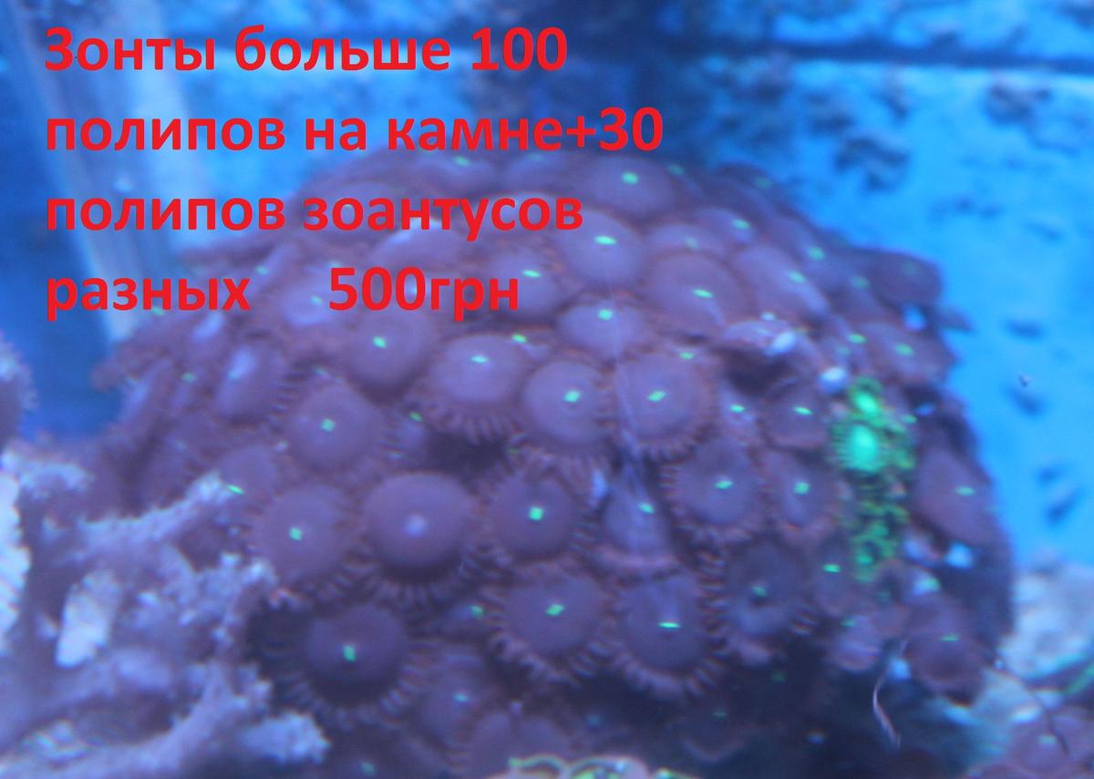 7.Зонты розовые на большом камне. больше 100 полипов + растут зоантусы разные на мидии (живой