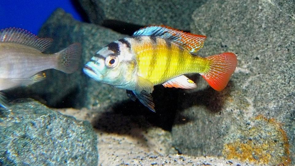 В старіх книжках з акваріумістики схожу рибу назівають радужным хаплхромисом, але гугл на цю назву видає також смугастих.