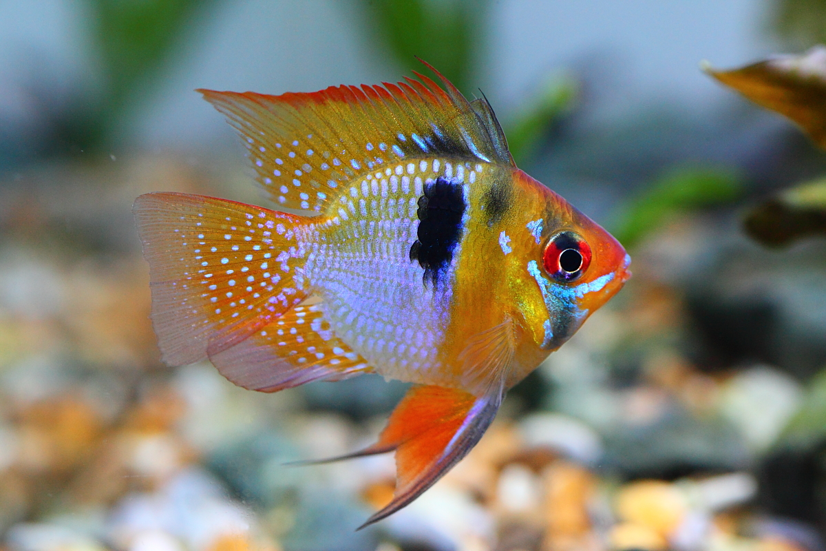 Mikrogeophagus ramirezi (живут в акваскейпе с карликовыми тетродонами)