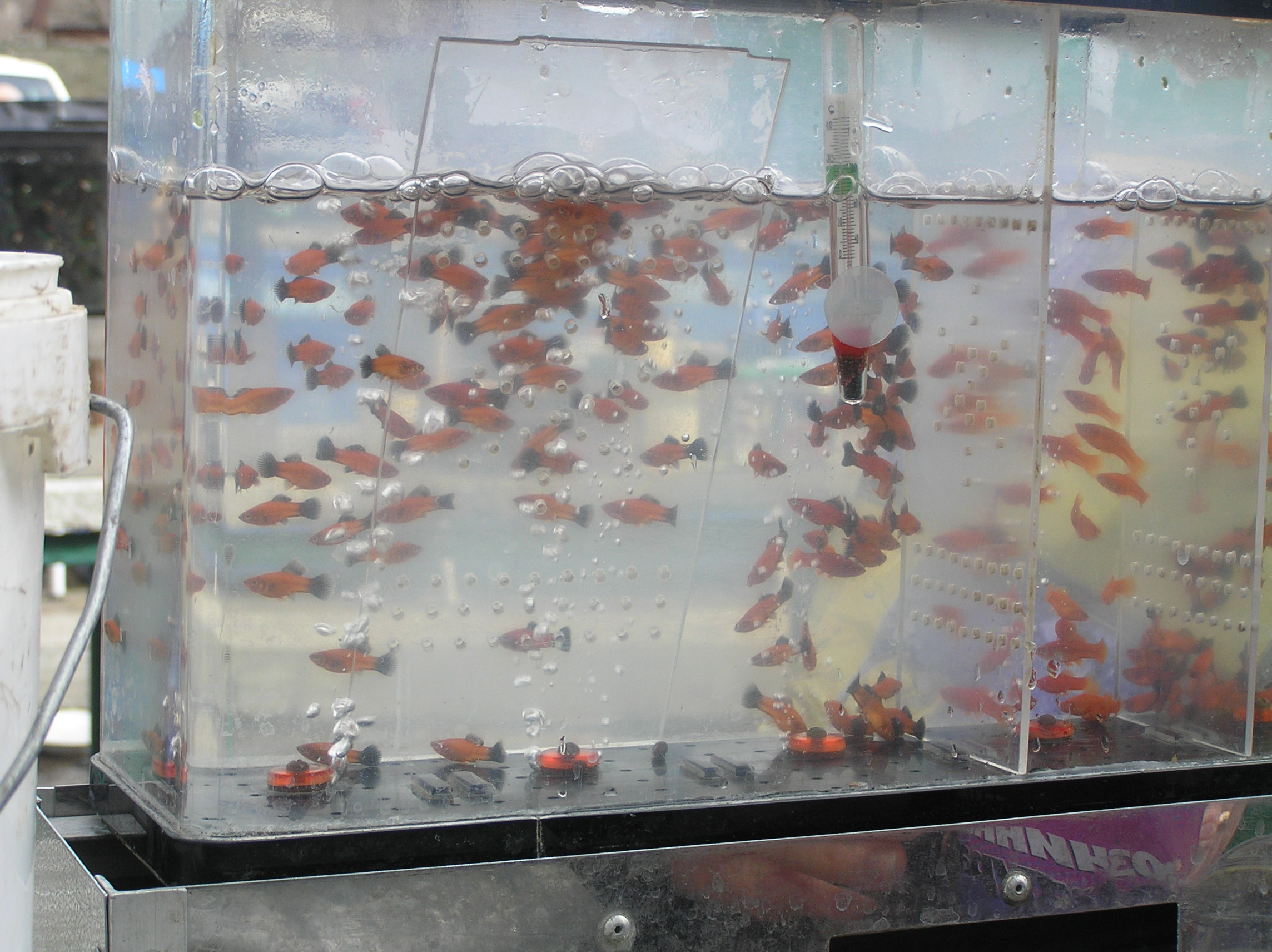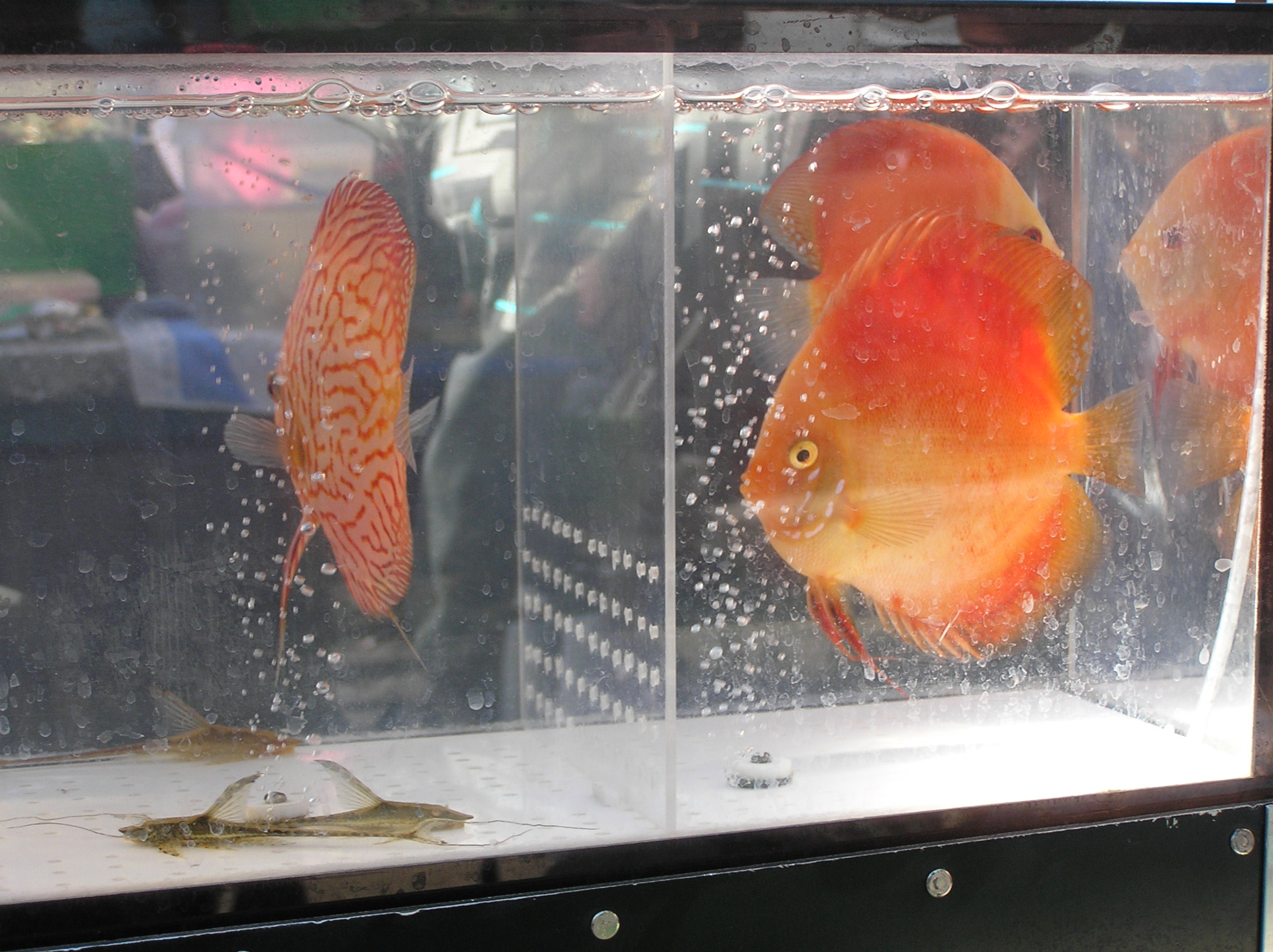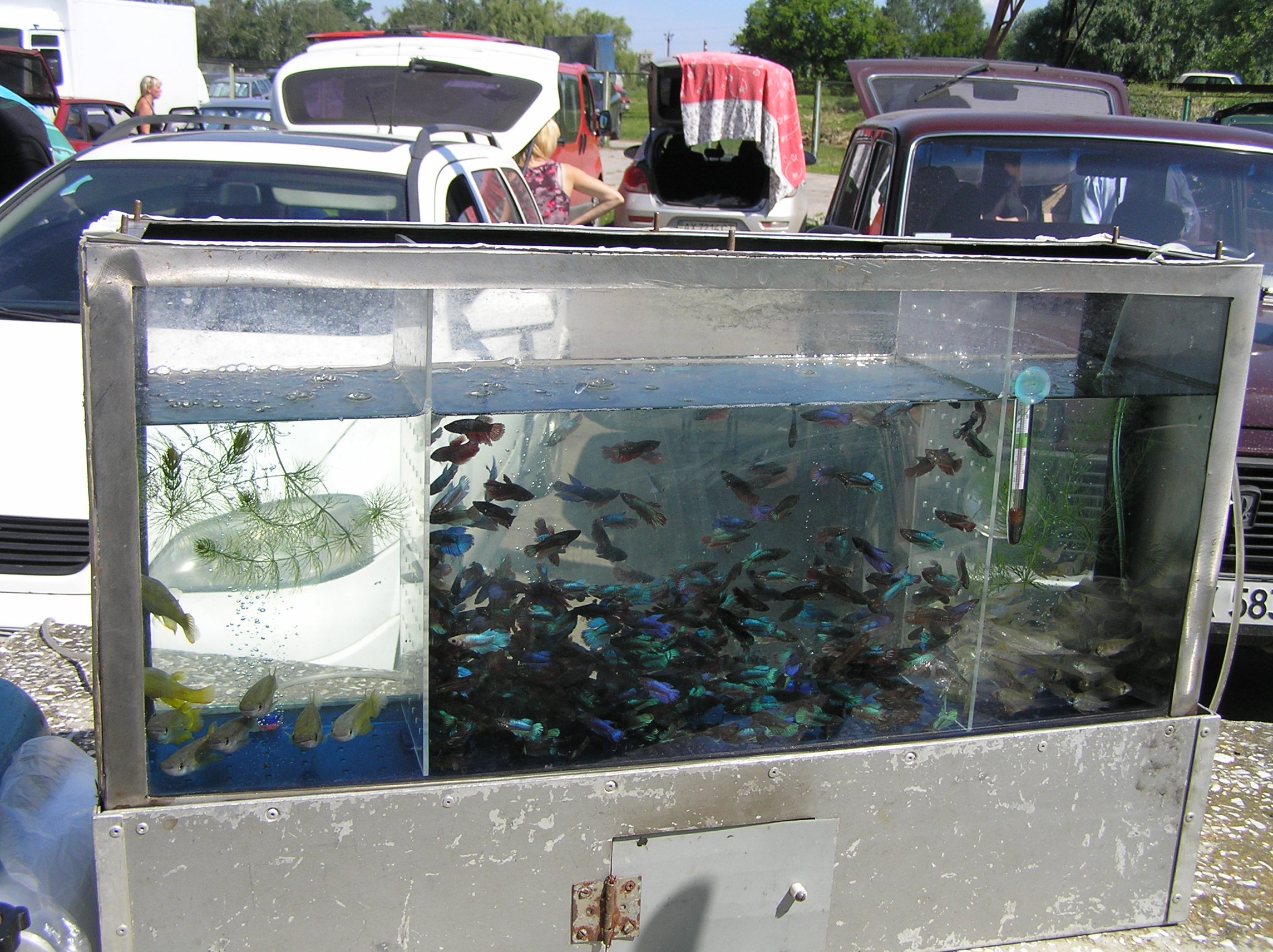 Сегодня съездил на Птичий рынок.Как ни старался избежать жары,но попал только на 8.45 маршрутки и через полчаса прибыл на место.С одной стороны,время 9.00-9.30 это слишком рано для рядового любителя и поэтому народу было немного от обеих сотрудничающих в нащем аквавопросе сторон.Но я не собираюсь ни преукрашивать,ни наоборот,состояние рынка.Да, мало продавцов,мало покупателей.Но рыба-то почти ни по чем.Умный,запасливый покупатель сейчас может её нагрести -ой-ой.Жаль в бочке её не засолишь впрок.Однако,рыбки разных,ярчайших раскрасок,неповторимых цветов перед вами.Немного пофотал.И пусть простят меня те,кто не папал в фотосессию.Был вынужден с наступлением зноя сбежать,не попрощавшись.Но,что успел снять,смотрите и присоединитесь к воскресному фестивалю жизни,красок.