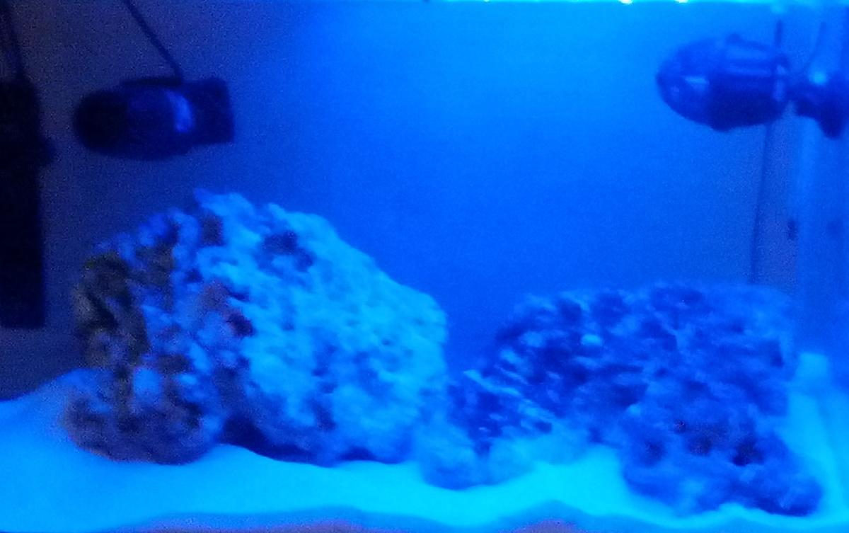 Из животных доставшиеся бонусом в живых камнях офиуры, зеленые дискосмы, улитка и три поразонтуса (еще раз спасибо Kazya!). Обнаружилась и парочка айптазий, одну удалось отсифонть, вторая растет и пока только радует... Есть макаронные червяки, веерные коральчики и всякая мелкота вроде блох и гаммаруса. Уже и протупить успел. Пару раз не удержался и отключив помпы покормил офиурок "пресным" кормом. Вроде совсем чуть-чуть закинул, но в тех местах где упал корм теперь мелкие коричневые водоросил накамне. Утешаю себя тем, что это непосредственно под лампой и это не корм причиной, а вполне закономерная вспышка диатомовых из-за процессов в СРК.