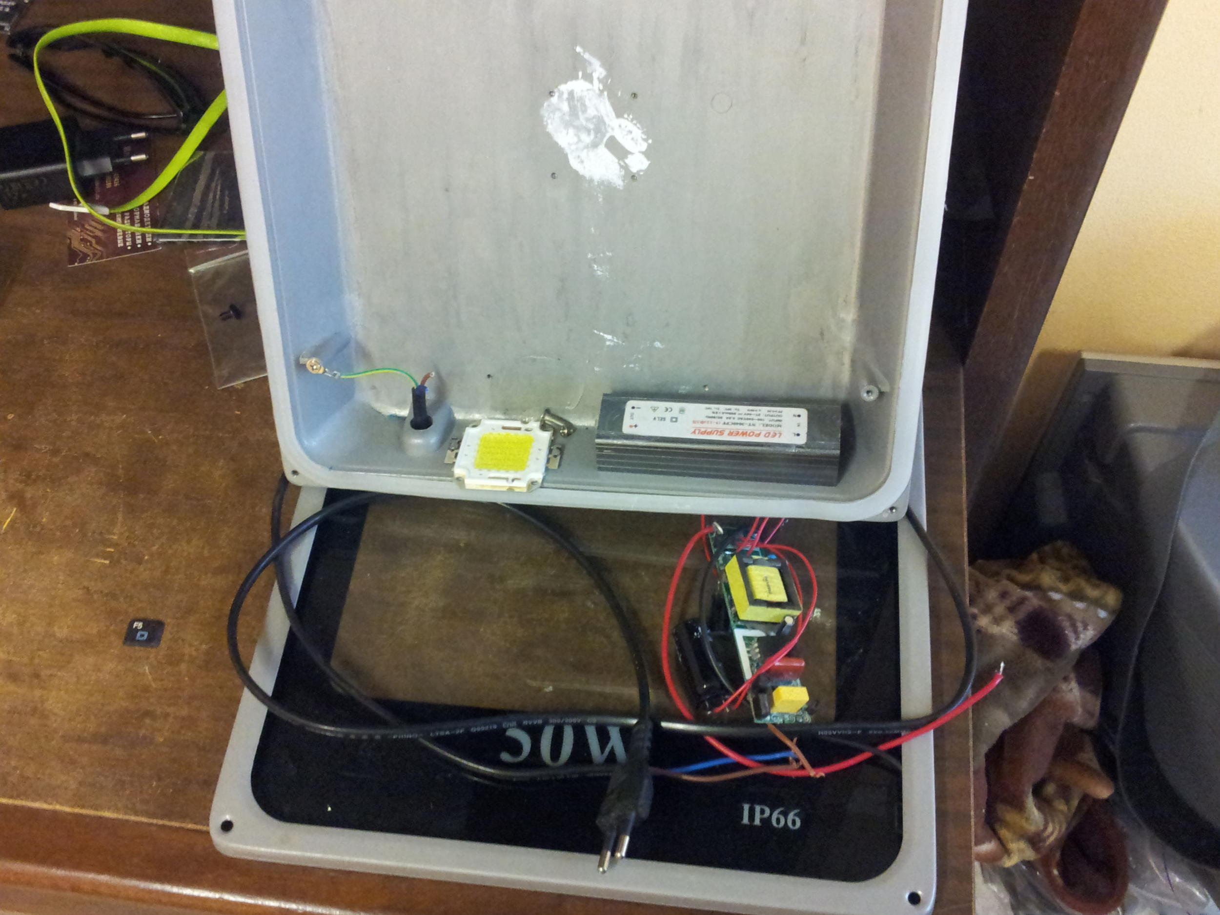 Ходил неделю назад (и сегодня заходил) в мастерскую. Мастер который занимается прожектором на работу по непонятным причинам не выходит. Сделал пару фото прожектора в разобранном виде ( а что еще делать). Внутри почти никаких маркировок на деталях нет (хотя и не знаю, а должны ли?). Не понятно действительно ли матрица 50 Вт, и не понятно какой блок питания (другой ремонтник смотрел блок сказал, что непонятно для какой матрицы его можно использовать).