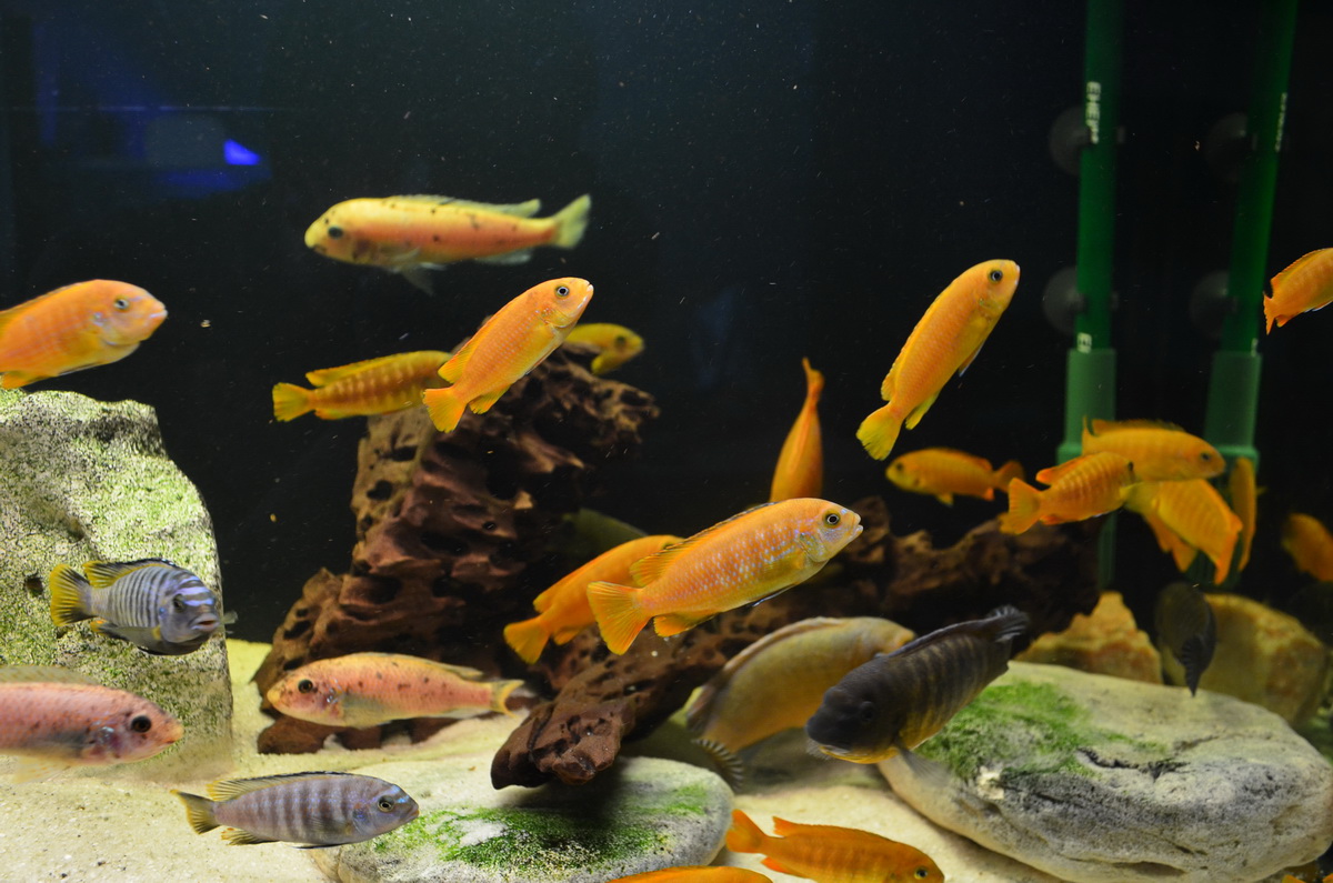 35-40 рыб Pseudotropheus Saulosi, Labeotropheus trewavasae Chilumba, боции, геринохейлус, гипанциструс l270. Самой старшей рыбе 2 года. Рыба ни разу не болела, не лечилась, ела только сухие корма пр-ва США, Германии.