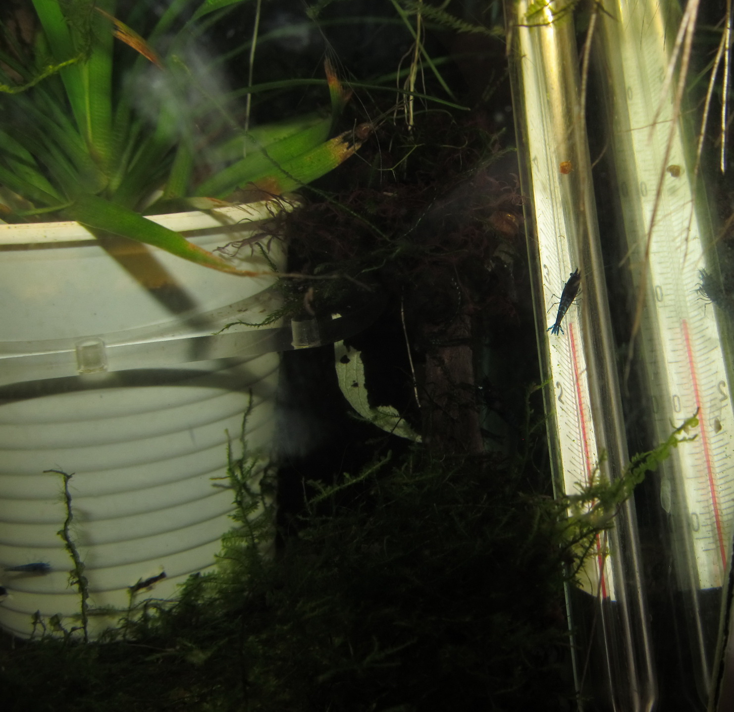 Водная часть - 4 см воды, в которой успешно отнерестилась группа в этом году. Воду не удобряю, растениям с головой достаточно питательных элементов из экскрементов тритонов. Сейчас, после нереста, родители вышли из воды, и обитают в сухопутной части.