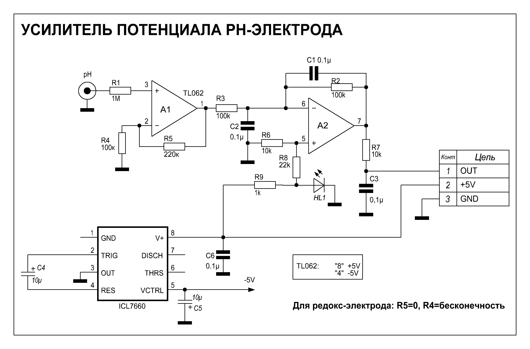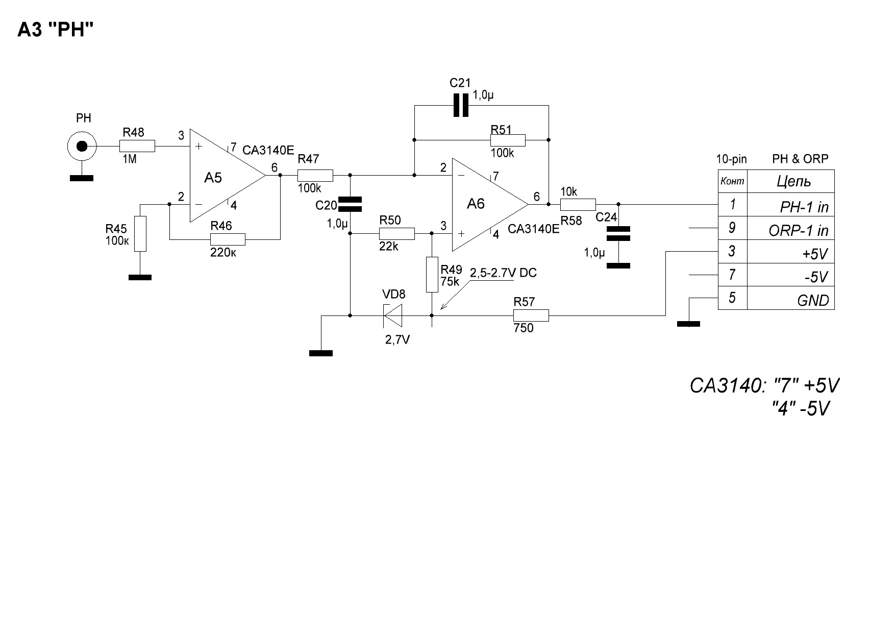 Вообщем таки выдернул одной картинкой схему усилителя РН и ORP (с сайта Юсупова)