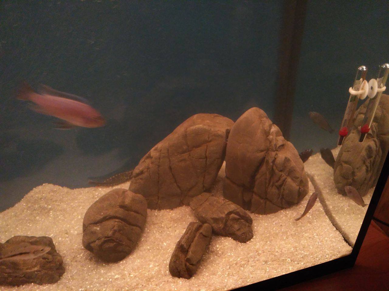 Согласен, укрытий нет. Я смотрел стандартные малавийские цихлидники, там слишком большой хаос и всего натыкано мне такое не нравится вообще. Хочу что бы было просто, но в тоже время и не "голо".