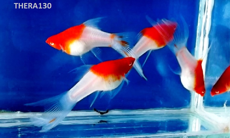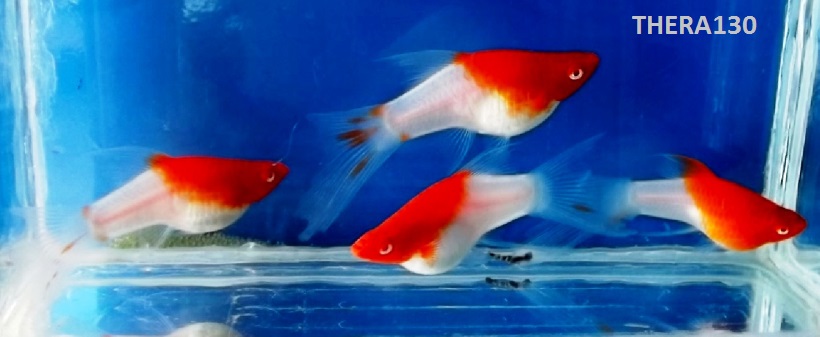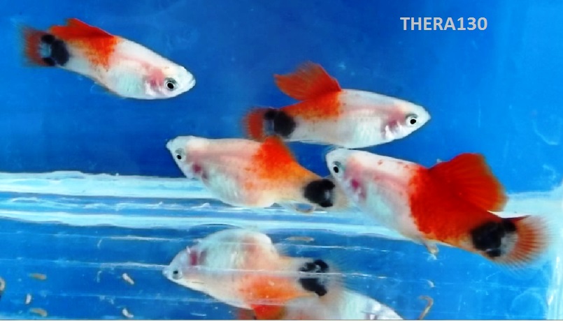 Меченосцы Кои Санке(Сева) , Koi Sance (Showa) ,Трехцветный Кои . Эти меченосцы с белой фоновой(См. пояснения на фото ниже) .