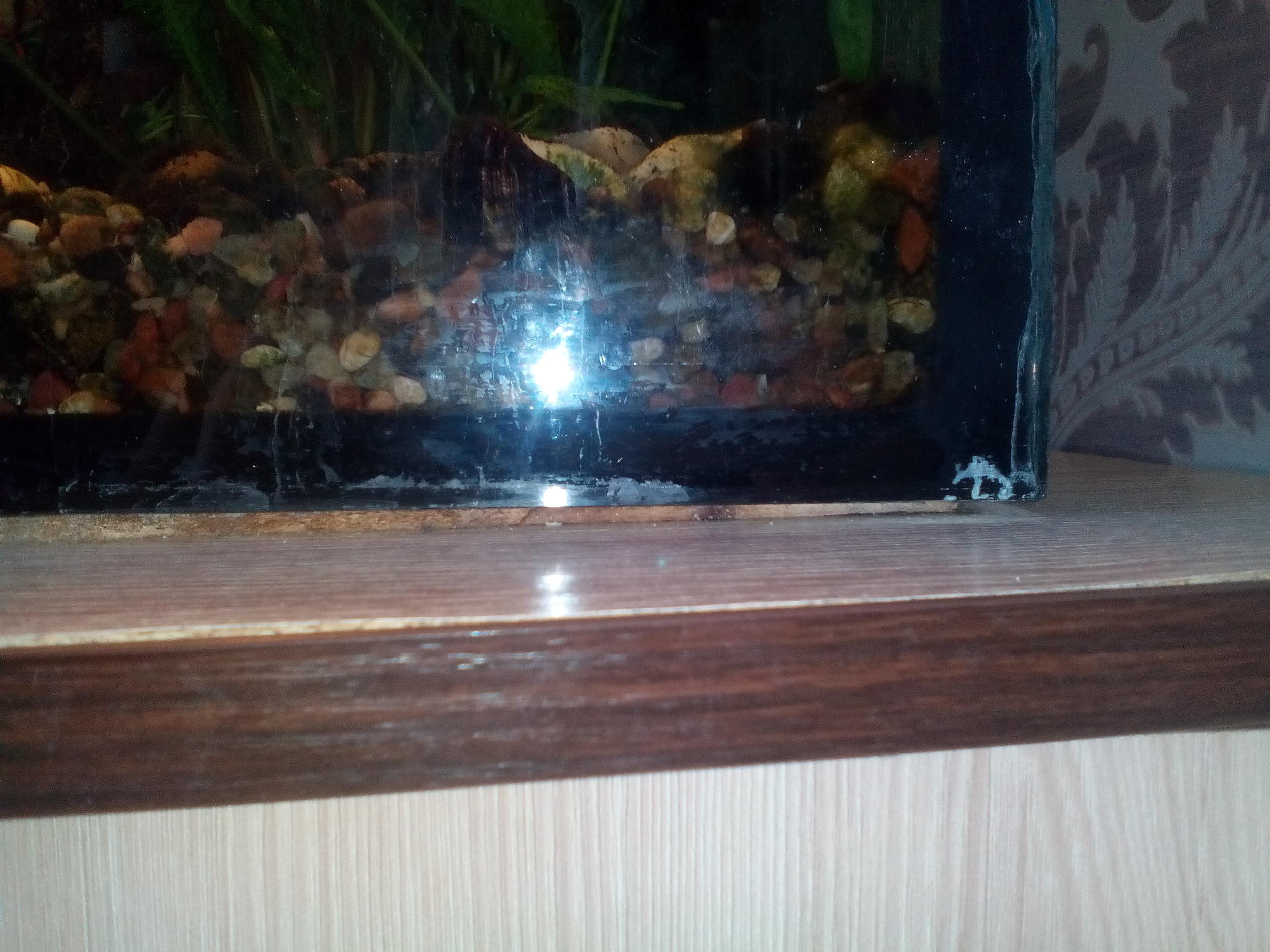 Аквариум запущен более 5 лет. Барбусятник. 250 литров. Под банкой лежала подложка (оставалась после укладки ламината). Сейчас подложка стала ссыхаться и сужаться в некоторых местах. Она уже не по всему периметру аквариума, а по 1-1,5-2 см сжалась по лобовому стеклу. Получается зазор.