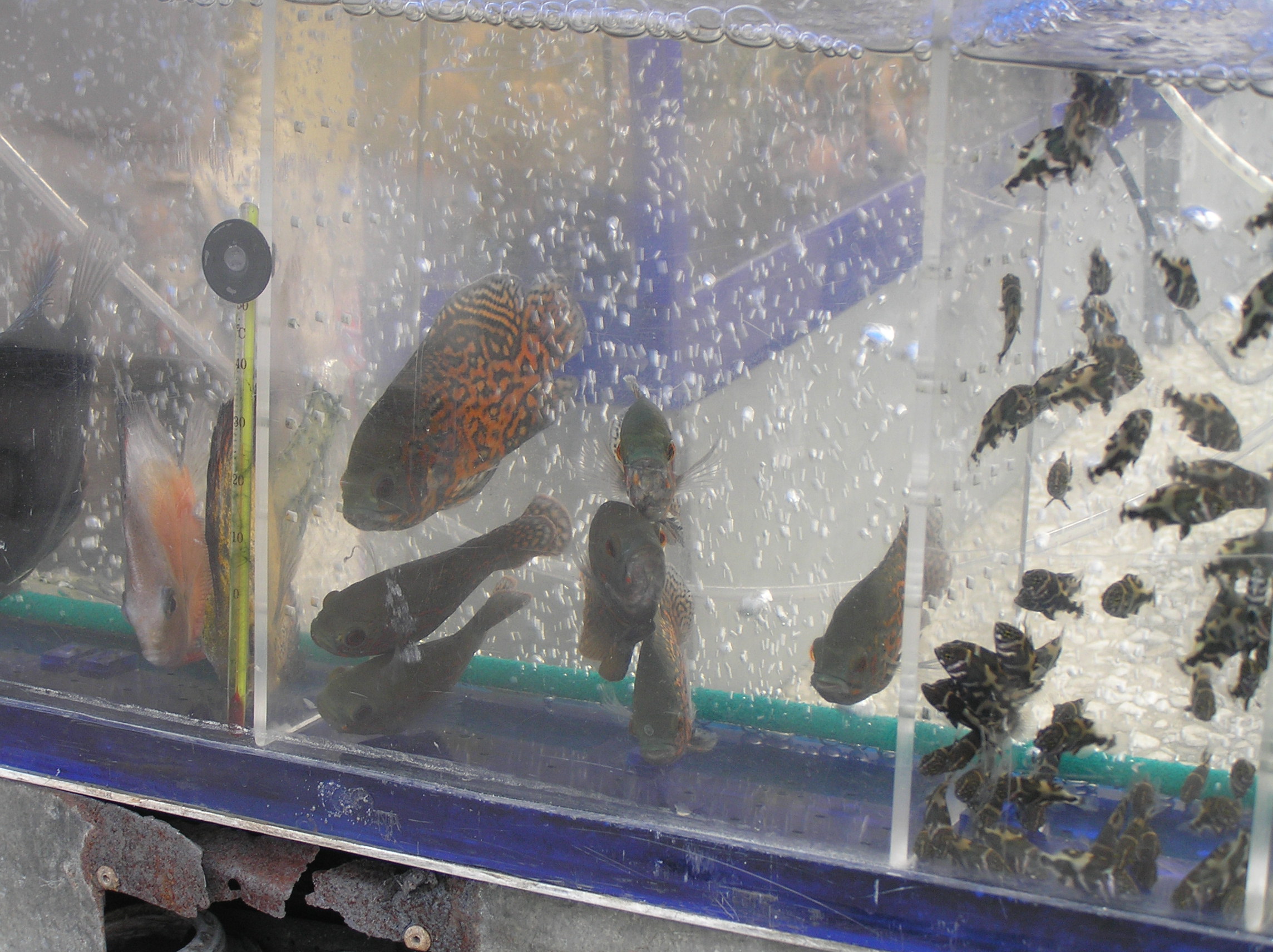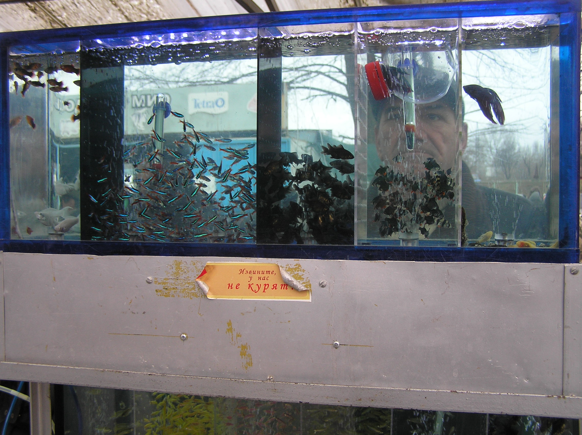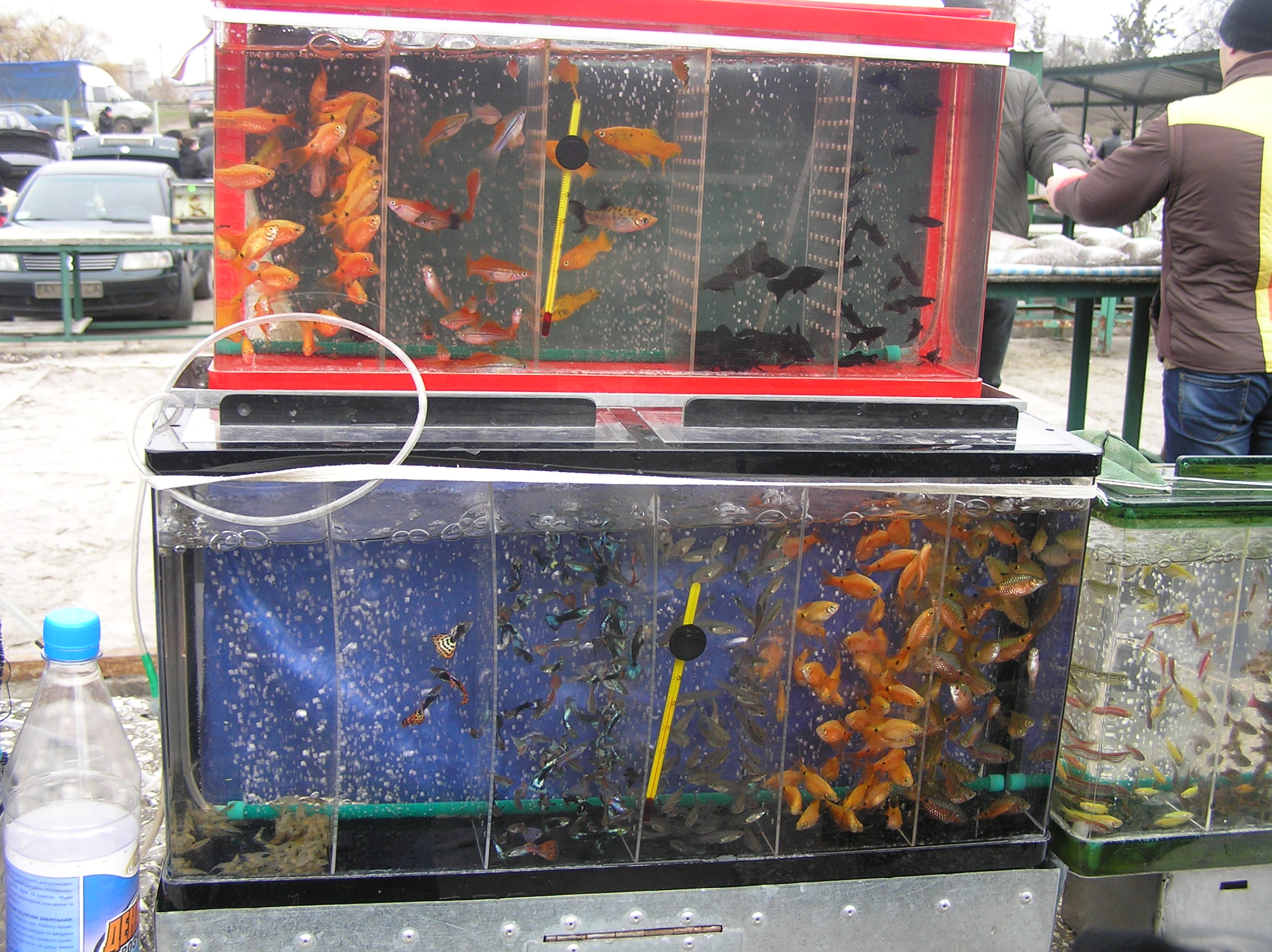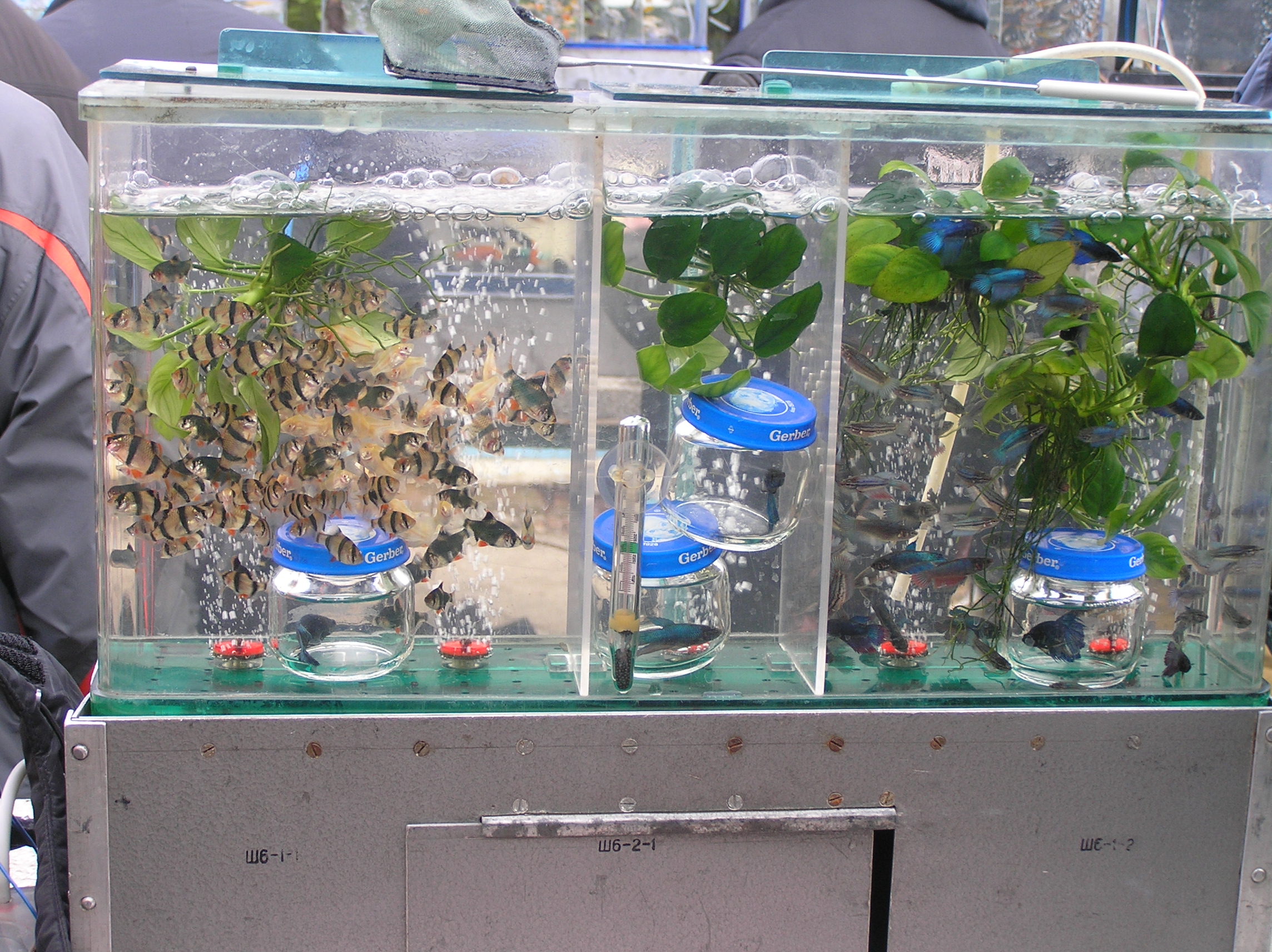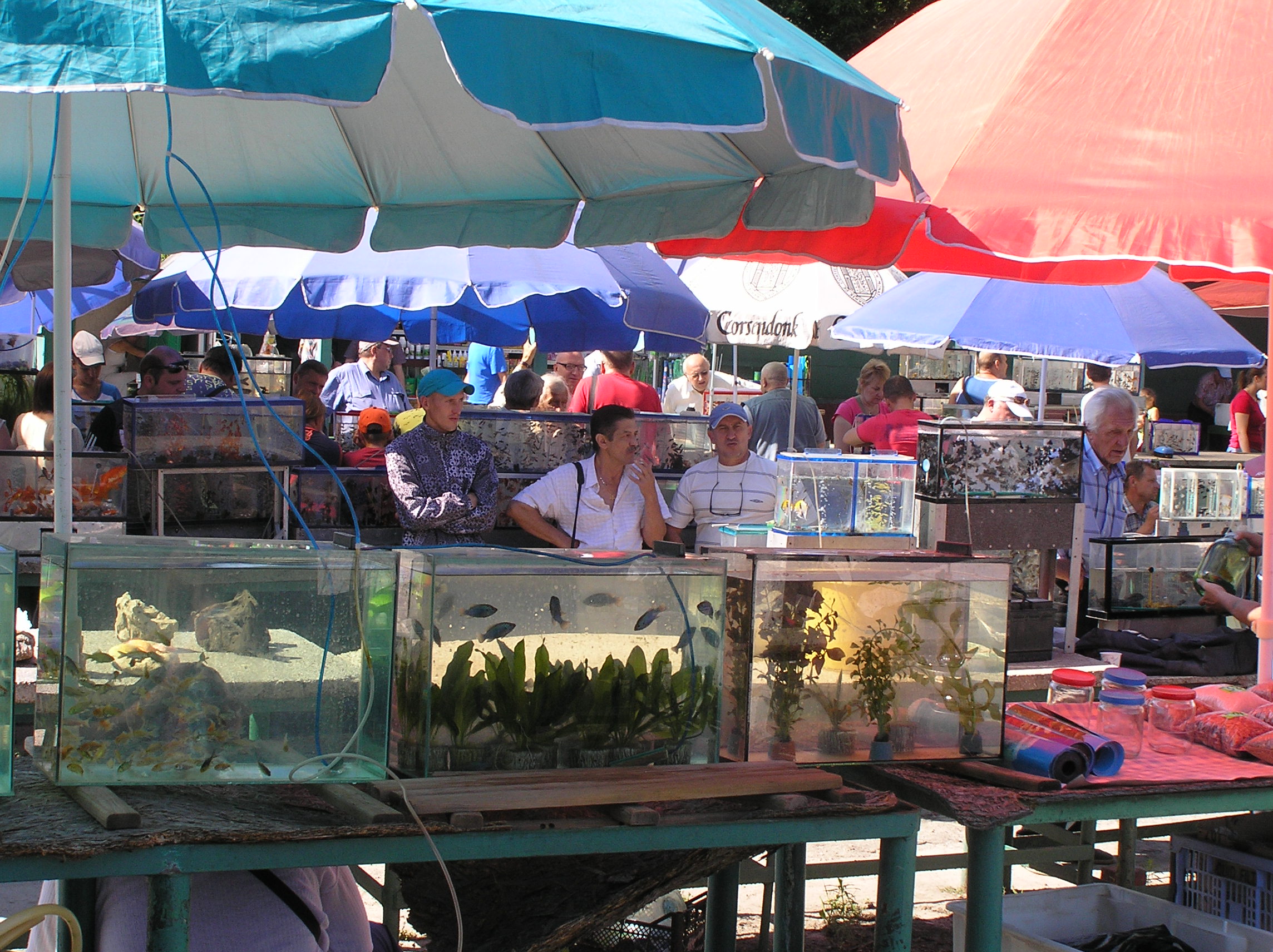 Сегодня съездил на Птичий рынок.Как ни старался избежать жары,но попал только на 8.45 маршрутки и через полчаса прибыл на место.С одной стороны,время 9.00-9.30 это слишком рано для рядового любителя и поэтому народу было немного от обеих сотрудничающих в нащем аквавопросе сторон.Но я не собираюсь ни преукрашивать,ни наоборот,состояние рынка.Да, мало продавцов,мало покупателей.Но рыба-то почти ни по чем.Умный,запасливый покупатель сейчас может её нагрести -ой-ой.Жаль в бочке её не засолишь впрок.Однако,рыбки разных,ярчайших раскрасок,неповторимых цветов перед вами.Немного пофотал.И пусть простят меня те,кто не папал в фотосессию.Был вынужден с наступлением зноя сбежать,не попрощавшись.Но,что успел снять,смотрите и присоединитесь к воскресному фестивалю жизни,красок.