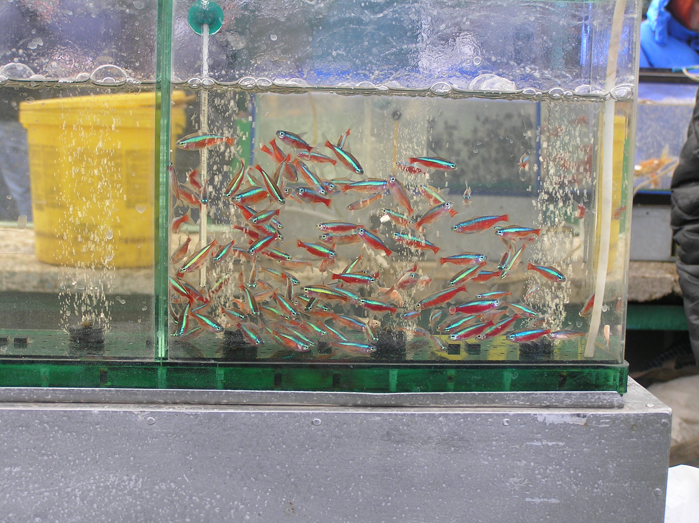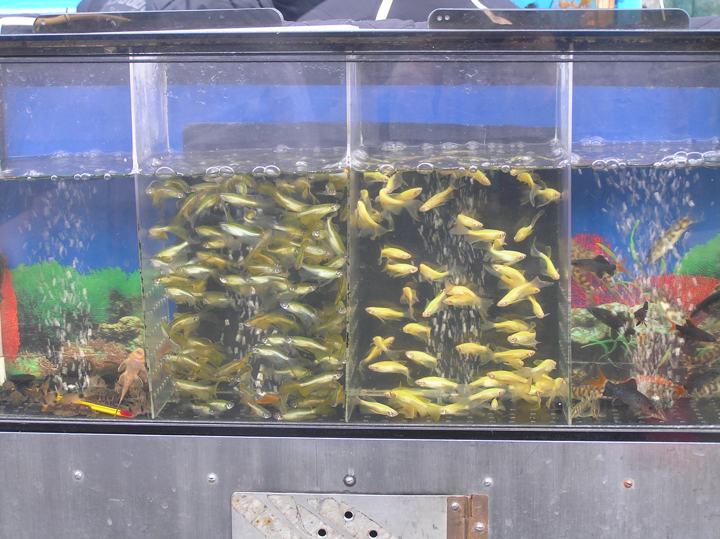 Вот тут остановлюсь особо.Я сначала никак не отметил этот третий эпизод.Теперь возвращаюсь.На третьем фото в крайнем левом отсеке сидит крайне редко встречающаяся у нас рыбка.Это расбора.Но какая?Её часто спрашивают и не всегда она есть.Особо красива,когда взрослеет.Она хорошо держит стаю и её обычно очень любят аквадизайнеры.Но и красива ..К сожалению ,будучи на рынке,я не уделил ей должного внимания.И только после сообщения одного нашего коллеги,что он купил этих красавиц,я понял свой промах.Рассмотрев свои фото, нашел её.Это расбора Еспей.А ведь её очень часто спрашивают.У меня есть немного подростков этого вида.Но на рынке- целая ширма.Не дешевы,но и не так дороги по затраченным усилиям при её разведении и подъеме..