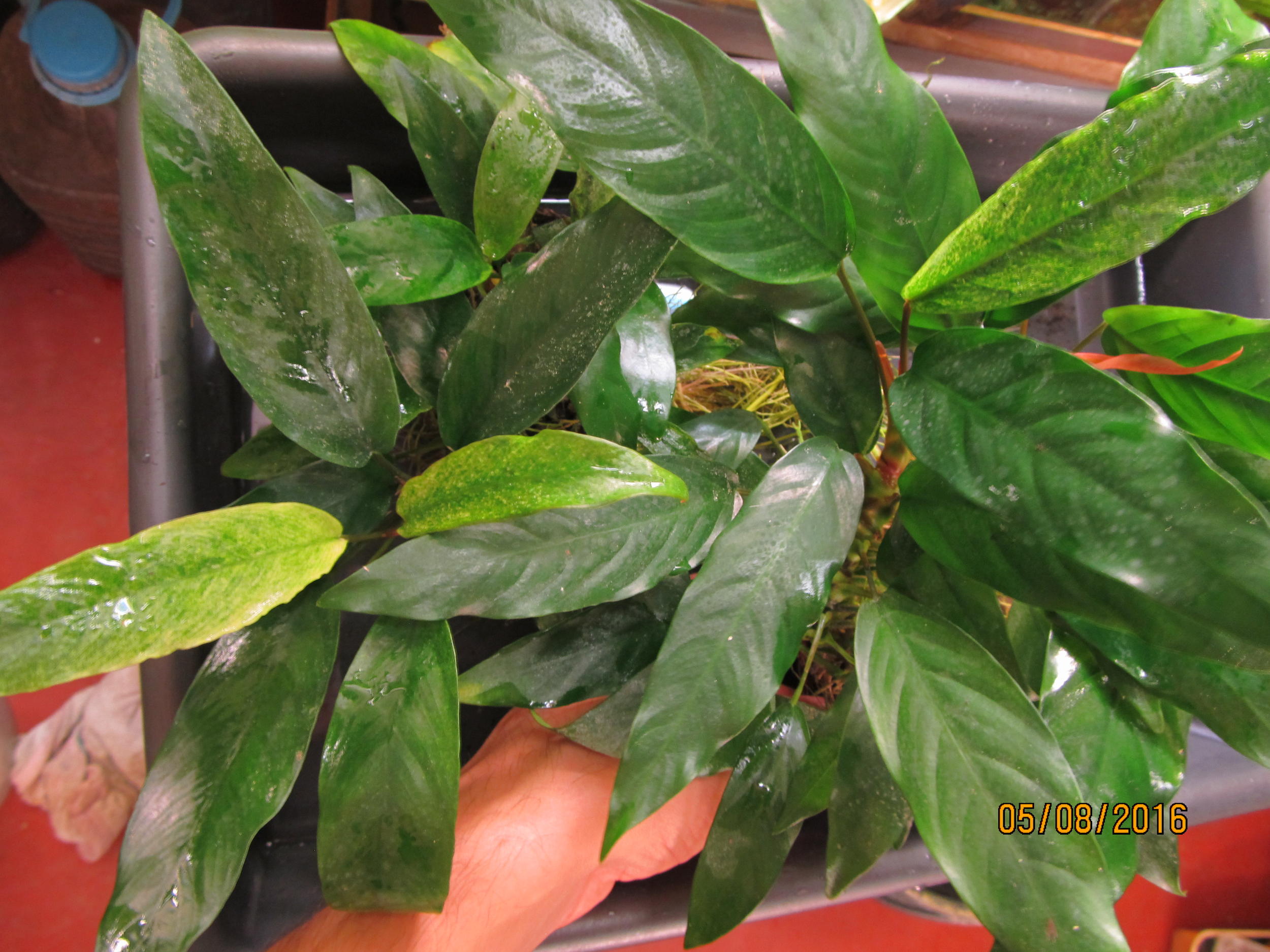 GMA, такой или очень похожий анубиас я получал. Мне он показался гибридом, вероятно с участием gilletii, на эту мысль навело то, что корни растут со всех сторон ризомы, а не только снизу. У вашего так? На фото не видно.