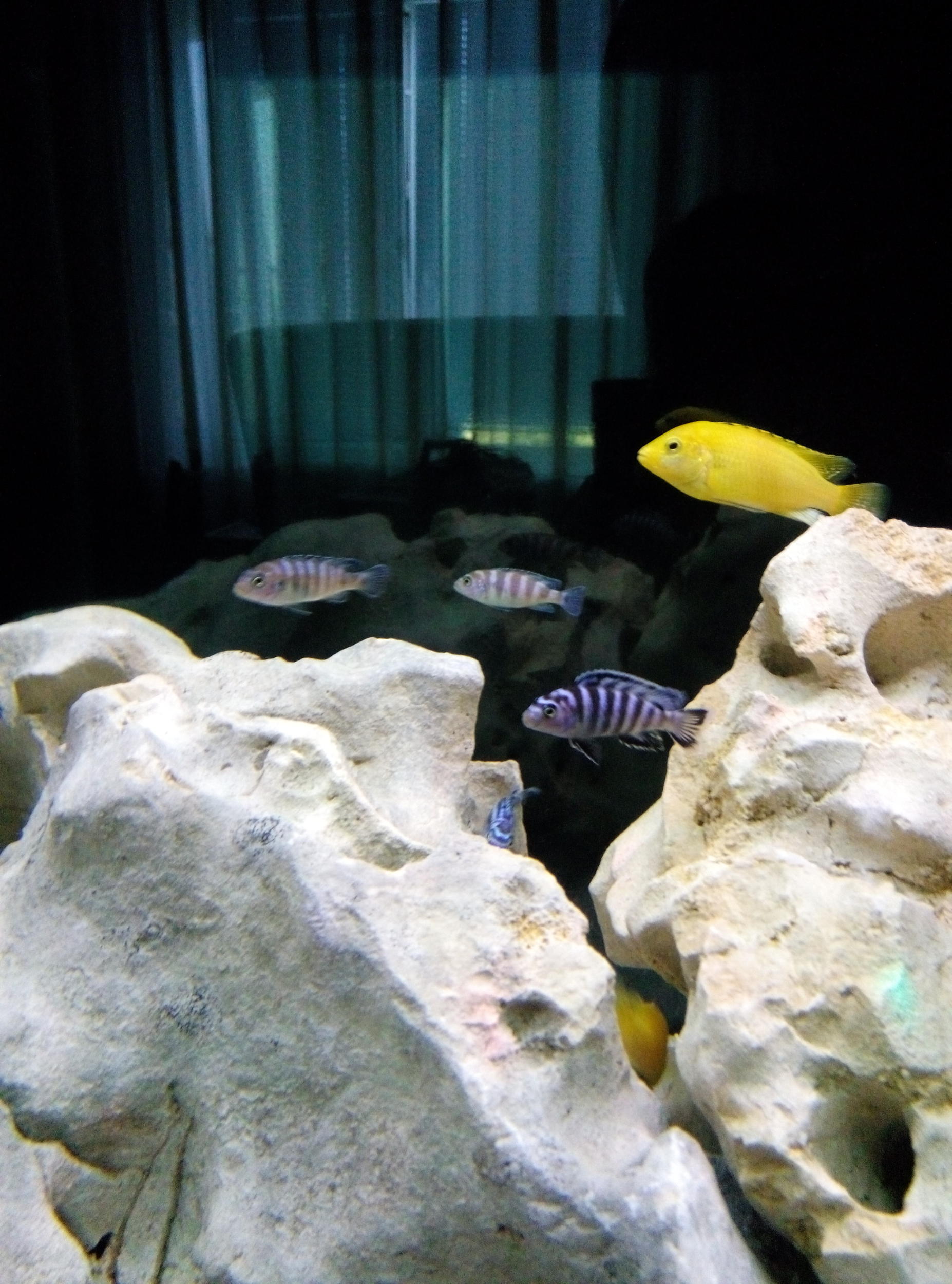 Сегодня произошла первая потеря. Обнаружил мертвый еллоу. Очень неожиданно, т.к. еллоу у меня живется лучше всех (во всяком случае я так считаю), всегда активные, яркие, корма им больше всех доставалось,никого не трогают и их никто не обижает. Рыбка была средних размеров в стае.