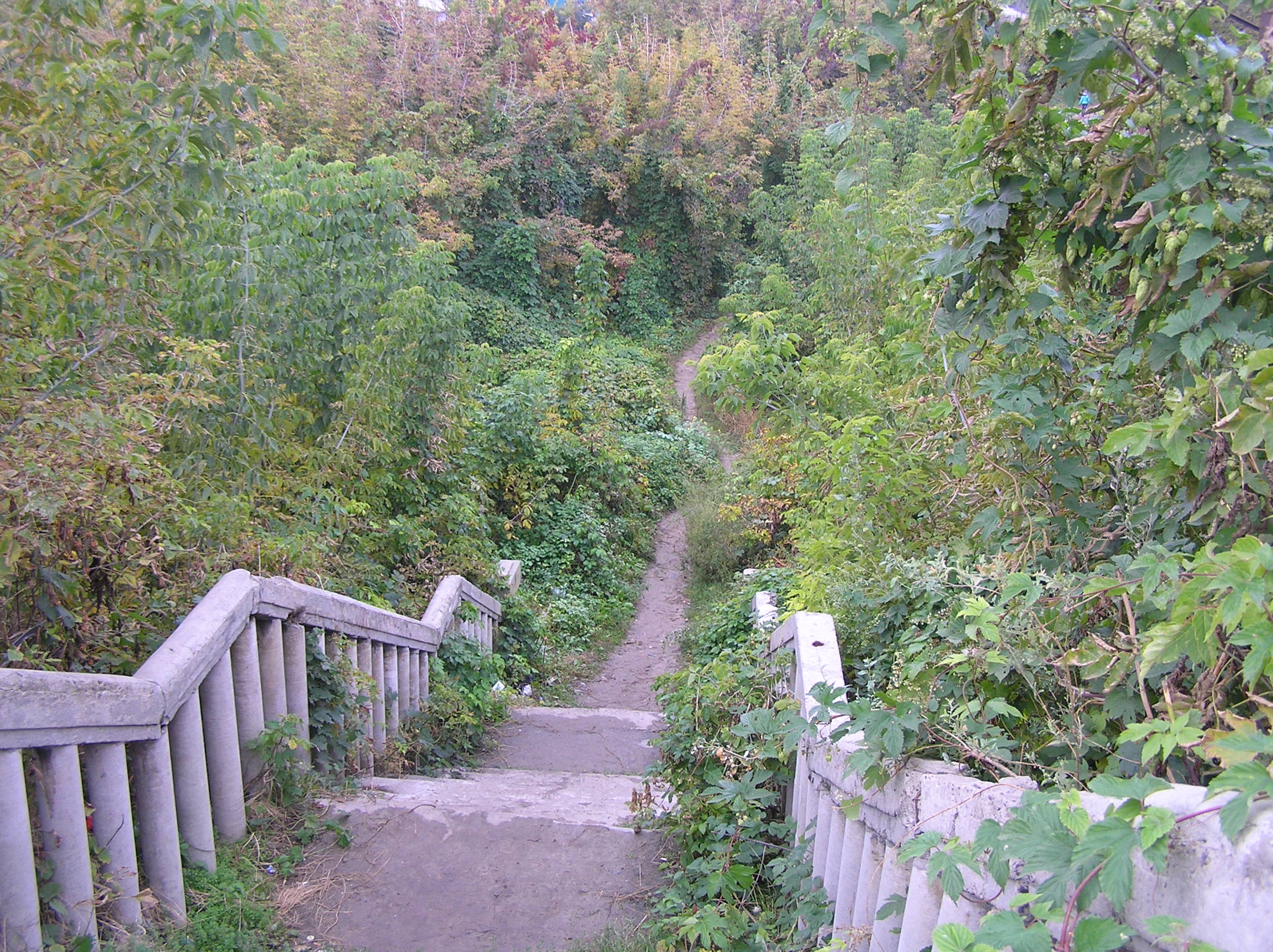 ...Как всегда, начинаю с монументальной лестницы,ведущей от остановки общественного транспорта к реке и далее, к рынку.Это наводка для тех,кто еще никогда там не был.Путеводитель.По дороге будут рыбаки.Теперь их аж три.Видно рыба расплодилась в одной из наших рек,Уды.