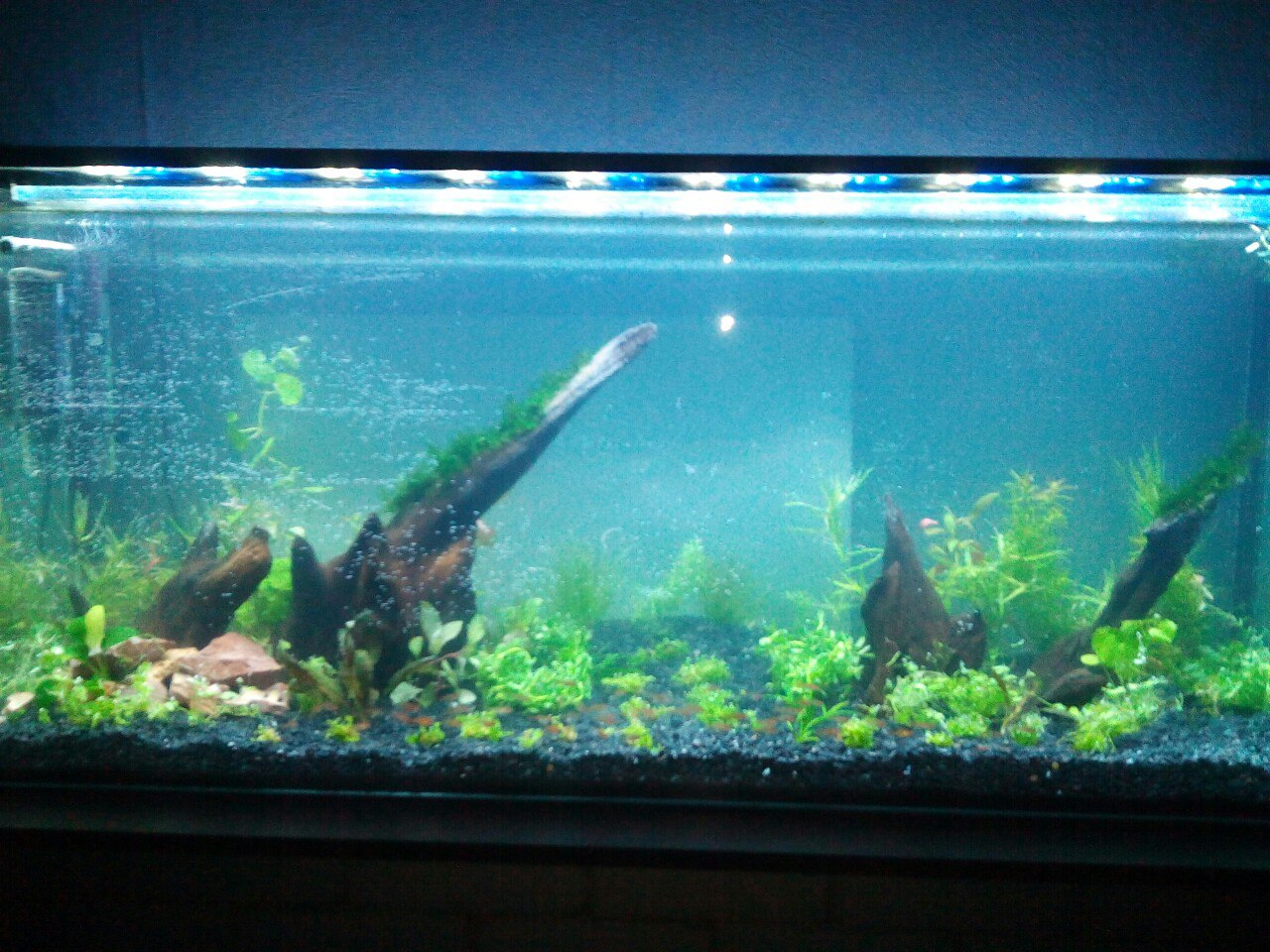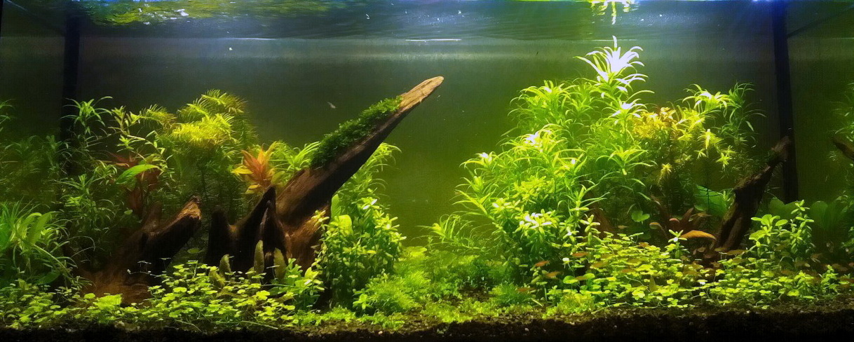 а обьем аквариума? на фото, что-то зеленит, такое ощущение что вода цветет.