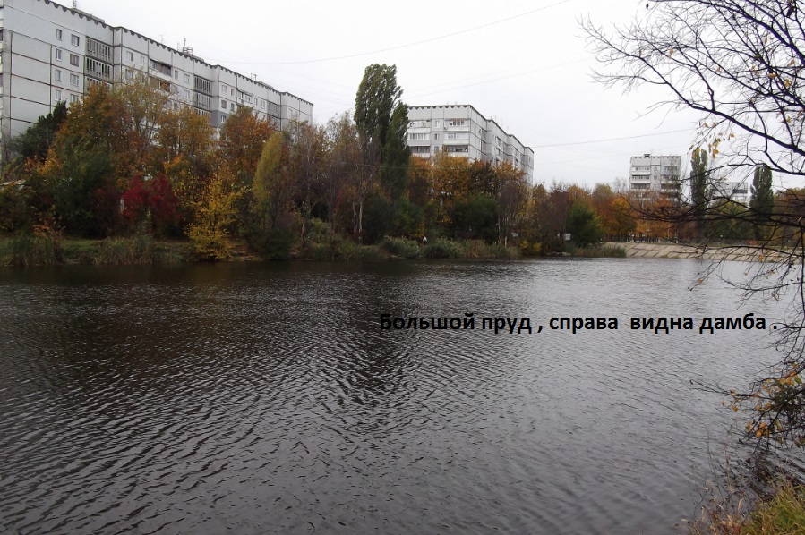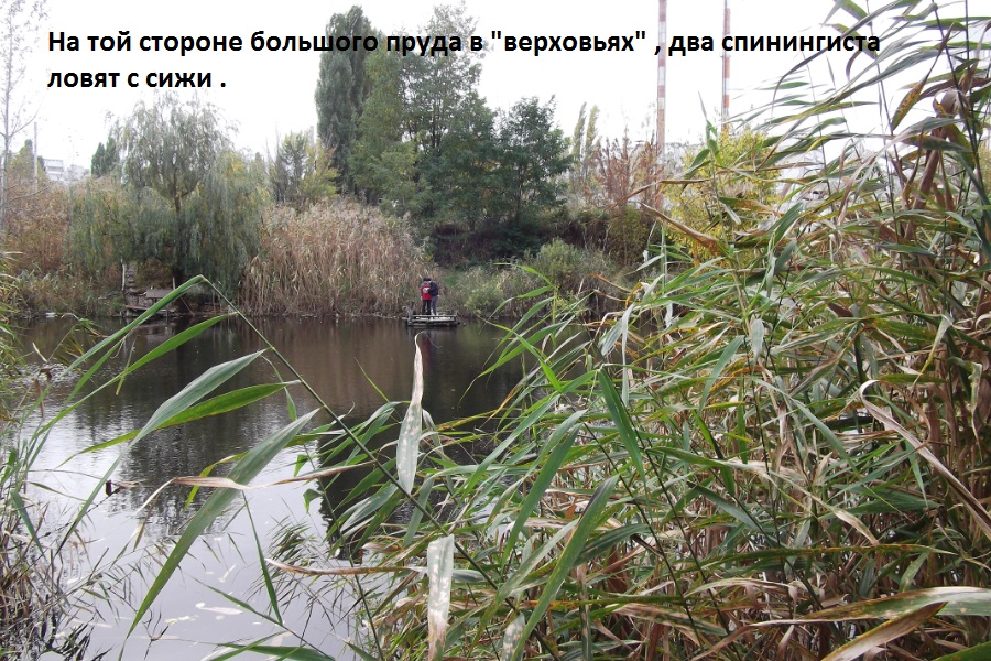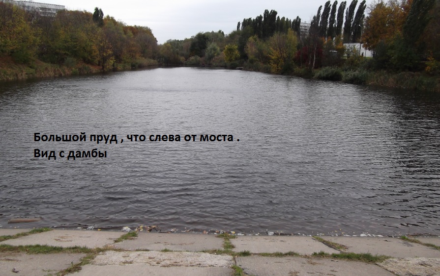 Отправился на большой пруд , тот что слева от моста . Пруд тянется по ул. Метростроителей в сторону ул.Академика Павлова . Встретил на берегу четырех спинингистов , сегодня будний день , это говорит о солидном прессинге для этого маленького водоема . Ловил на все , что захватил с собой из дома . После сорока бросков "в пустоту" , зацепил шнурка чуть более 25 см этого года нереста , не фотографировал , так как шнурок зацепился краем губы - я быстро отцепил и отпустил к маме . Ниже фото большого пруда по ул. Метростроителей на Северной Салтовке .