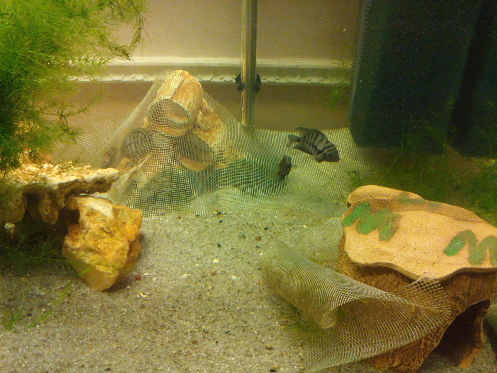 Укрыл декорации, где живут/нерестятся пары, и в результате другие рыбы не могут кусать родителей, не могут скушать малька, родители свободно заплывают за сети, а другие туда даже не рискуют туда плыть.
