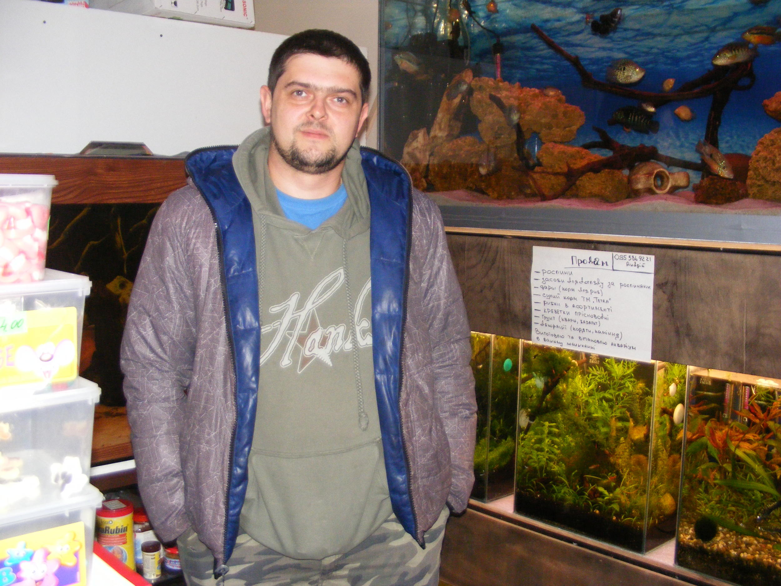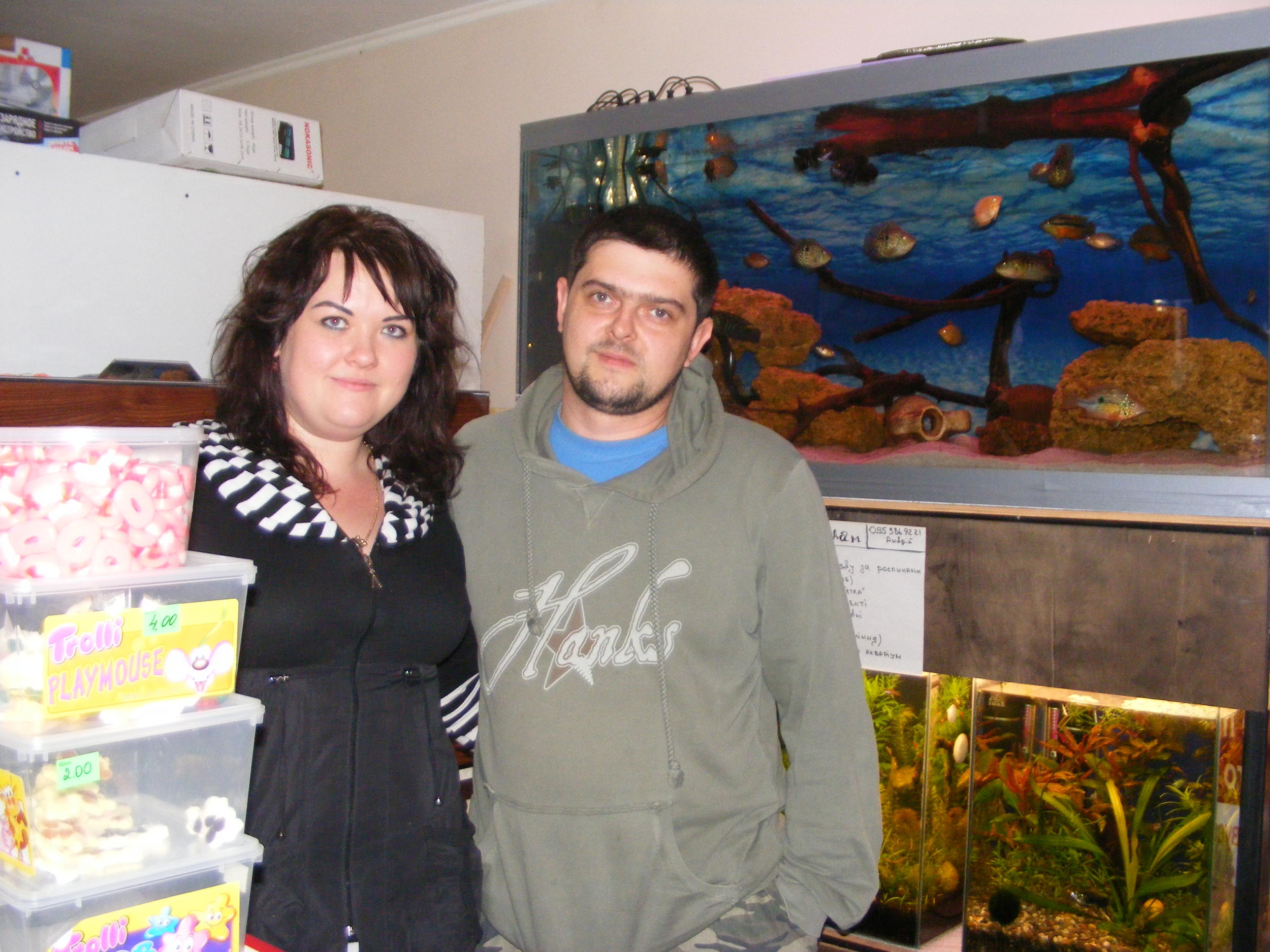 Володя и Анатолий разрекламировали местную пекарню. Поехали туда купить пиццу..... Шок был неймоверный... Хозяин пекарни Андрей и его жена Камила.... Их аквариумы и их работа. Пицца, пирожки и вся выпечка действительно были ШИКАРНЫЕ..... Но и аквариумы в магазине...