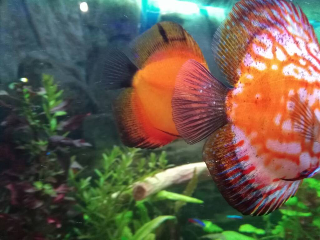 живет в травнике с корягой и другими дискусами, сейчас отделилась пара и пытается нереститься, в связи с этим рыбки иногда дерутся